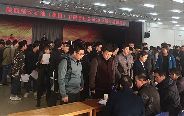 12月6日上午,陜西延長石油(集團)有限責(zé)任公司專場招聘會在鄠邑校區(qū)騰輝大學(xué)生活動中心舉行。延長石油(集團)有限責(zé)任公司下屬15家單位、30余名招聘代表來校選聘畢業(yè)生。全校相關(guān)專業(yè)近1000名畢業(yè)生參加應(yīng)聘。