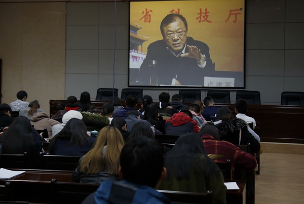 在報(bào)告會(huì)上,盧廳長(zhǎng)作為黨的十九大代表,和我校黨員干部分享了參加黨的十九大開幕式、黨的十九大“實(shí)施創(chuàng)新驅(qū)動(dòng)發(fā)展戰(zhàn)略”集體采訪活動(dòng)、開幕式現(xiàn)場(chǎng)及會(huì)后持續(xù)不斷地學(xué)習(xí)黨的十九大報(bào)告等過程的所思、所想、所悟及切身體會(huì),并從黨的十九大報(bào)告、黨的十九大報(bào)告有關(guān)科技創(chuàng)新工作及陜西省科技創(chuàng)新工作思路、舉措等方面對(duì)黨的十九大精神進(jìn)行了全面系統(tǒng)準(zhǔn)確地講解和闡釋。同時(shí)結(jié)合陜西科技發(fā)展實(shí)際,重點(diǎn)指導(dǎo)我們學(xué)懂、弄通黨的十九大報(bào)告關(guān)于科技工作的新觀點(diǎn)、新論述,對(duì)于我校進(jìn)一步以黨的十九大精神為指導(dǎo),繼續(xù)深化科技工作制度機(jī)制改革,推動(dòng)產(chǎn)學(xué)研深度融合,服務(wù)區(qū)域經(jīng)濟(jì)社會(huì)發(fā)展,全面提升學(xué)??蒲泄ぷ鲗?shí)力和水平意義重大。