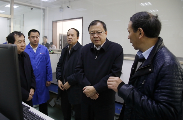 報(bào)告會(huì)前,盧建軍廳長(zhǎng)一行在我校黨政領(lǐng)導(dǎo)賽云秀、雷西合、李天太、李華及有關(guān)部門負(fù)責(zé)人的陪同下,先后參觀了我校油氣管網(wǎng)仿真實(shí)驗(yàn)室、儲(chǔ)層改造壓裂實(shí)驗(yàn)室、特種油氣藏增產(chǎn)技術(shù)重點(diǎn)實(shí)驗(yàn)室和油氣鉆井國家工程重點(diǎn)實(shí)驗(yàn)室井下測(cè)控研究室。盧廳長(zhǎng)對(duì)我校近年來科研平臺(tái)建設(shè)及科研工作取得的成績(jī)給予充分肯定,并在現(xiàn)場(chǎng)就繼續(xù)做好實(shí)驗(yàn)室及科研平臺(tái)建設(shè)、做好科技創(chuàng)新發(fā)展等工作進(jìn)行了有針對(duì)性的指導(dǎo)。
