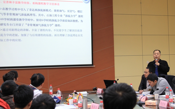 石油工業(yè)出版社高教分社社長徐秀澎介紹了此次研討會的組織過程。其他石油高校“滲流力學”課程負責人介紹了本校“滲流力學”課程建設方面的相關經驗。大家圍繞“滲流力學”課程建設的已有做法、未來規(guī)劃及存在問題進行了充分交流。