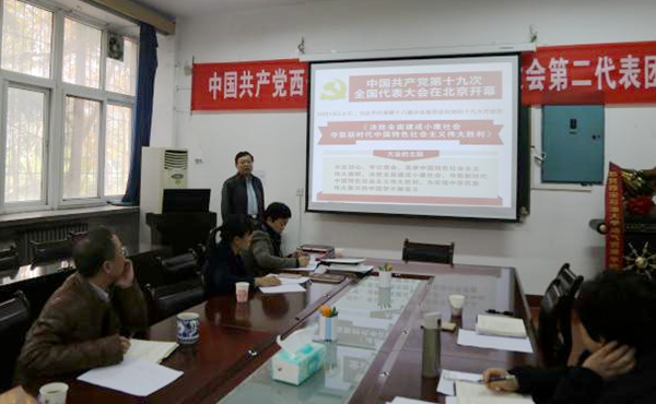 三是組織師生黨員觀看中國共產(chǎn)黨第十九次全國代表大會開幕會。結(jié)合學(xué)院工作實(shí)際,學(xué)院黨委下發(fā)通知,要求全體教工黨員自行觀看中國共產(chǎn)黨第十九次全國代表大會開幕會,并于2017年10月18日上午組織全體學(xué)工干部以及部分學(xué)生黨員、入黨積極分子等在鄠邑校區(qū)地科樓309教室一同觀看了中國共產(chǎn)黨第十九次全國代表大會開幕會現(xiàn)場直播,認(rèn)真聽取了習(xí)近平總書記代表十八屆中央委員會所作的工作報(bào)告。會后,大家紛紛表示,習(xí)近平總書記的工作報(bào)告振奮人心、催人奮進(jìn),大家要進(jìn)一步加強(qiáng)理論學(xué)習(xí),積極領(lǐng)會報(bào)告精神。