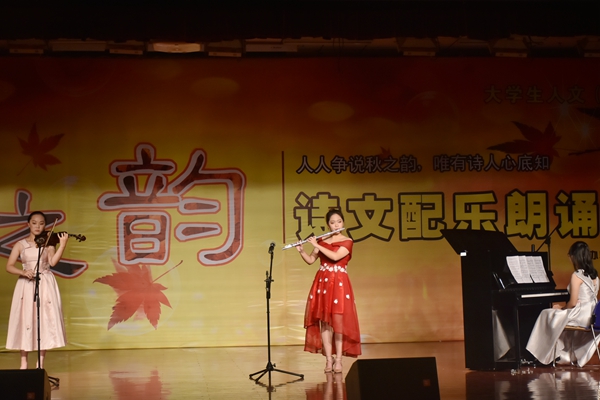 據悉,“秋之韻”詩文配樂朗誦活動已經舉辦了十一屆,為上萬名同學提供了展現(xiàn)風采的機會。“秋之韻”在豐富校園文化的同時,逐漸探索出了“院系推薦、專業(yè)教師導演、團委搭臺、學生表演”的人文素質培養(yǎng)模式。