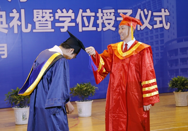 在學(xué)位授予儀式上,屈展校長(zhǎng)為2017屆500余名碩士研究生逐一授予學(xué)位、頒發(fā)學(xué)位證書,并與每一位畢業(yè)研究生合影留念。