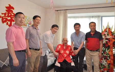 6月18日是我校退休教師嚴(yán)濟(jì)生老人的百歲壽辰。當(dāng)天上午,副校長(zhǎng)蘇文甫在校工會(huì)、人事處、離退休處、石油工程學(xué)院負(fù)責(zé)人陪同下,前往嚴(yán)老師家中為老人祝壽,祝福他身體健康、生活幸福。