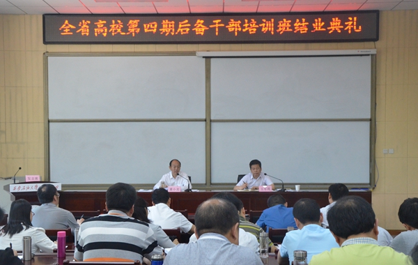 5月26日上午,“全省高校第四期后備干部培訓(xùn)班”結(jié)業(yè)典禮在我校明德校區(qū)繼續(xù)教育學(xué)院舉行。省委高教工委書記董小龍出席結(jié)業(yè)典禮并講話。省委高教工委組織部部長王軍周主持。來自全省38所高校的45名后備干部學(xué)員參加了結(jié)業(yè)典禮。