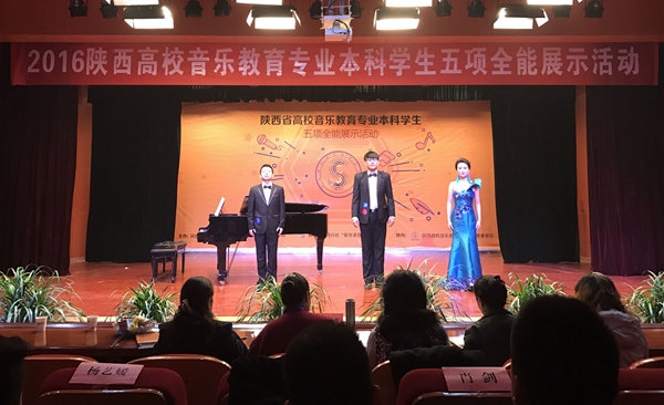本次展示活動是陜西省教育廳主辦的音樂教育權(quán)威性學(xué)科競賽,對各個參賽單位的教學(xué)水平和教學(xué)效果是一次很好的檢驗。經(jīng)過兩天五個項目(鋼琴演奏,歌唱與伴奏,自彈自唱,合唱指揮,自選舞蹈、說課、樂器演奏)的角逐,我校音樂系代表隊獲得團體全能一等獎第一名。郭麗娜同學(xué)在四個項目的比賽中均獲得第一名(鋼琴演奏一等獎第一名,合唱指揮一等獎第一名,自彈自唱一等獎第一名,歌唱與伴奏一等獎第一名),因此還獲得了個人全能一等獎;溫皓樂同學(xué)獲得了個人全能二等獎。