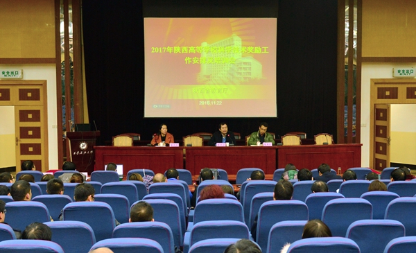 11月22日下午,由陜西省教育廳科技處主辦的2017年陜西高等學(xué)??茖W(xué)技術(shù)獎(jiǎng)勵(lì)工作安排及培訓(xùn)會(huì)在我校本部學(xué)術(shù)報(bào)告廳召開,來(lái)自西安交通大學(xué)、西北工業(yè)大學(xué)等全省74家高校的130余人參會(huì)。我校副校長(zhǎng)李天太,科技處、各院(部、系)負(fù)責(zé)人及相關(guān)教師參加了會(huì)議。省教育廳科技處副處長(zhǎng)秦天紅主持會(huì)議。
