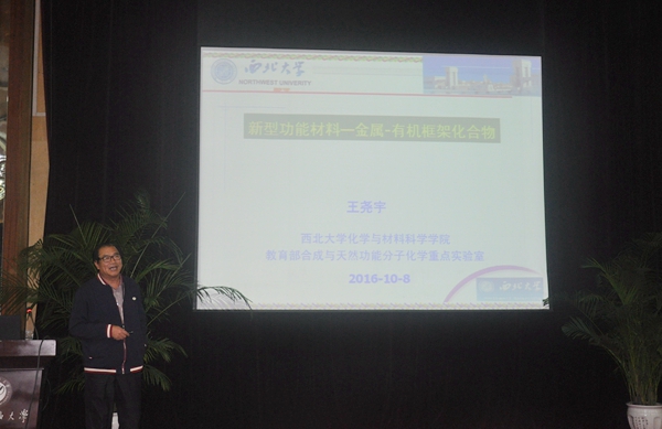 聘任儀式結(jié)束后,王堯宇教授在學(xué)術(shù)報(bào)告廳為化學(xué)化工學(xué)院師生作了題為《新型功能材料——金屬/有機(jī)框架化合物》的學(xué)術(shù)講座。