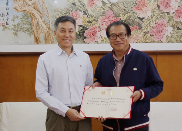 屈展校長為王堯宇教授頒發(fā)我校兼職教授聘書
