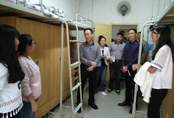 在檢查過程中,雷西合副書記要求學(xué)工部、后勤處和各院(系)要以“兩學(xué)一做”學(xué)習(xí)教育為契機,進一步深化“以生為本”工作理念,強化服務(wù)育人和制度管理工作,全面推進和諧公寓、文明宿舍建設(shè),確保為學(xué)生提供安全舒適的住宿環(huán)境,努力形成全體師生共建、共享美好和諧校園的良好局面。