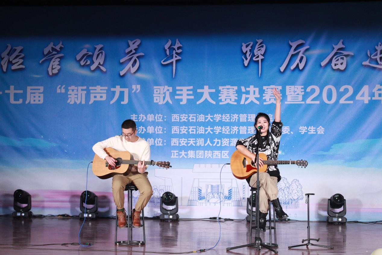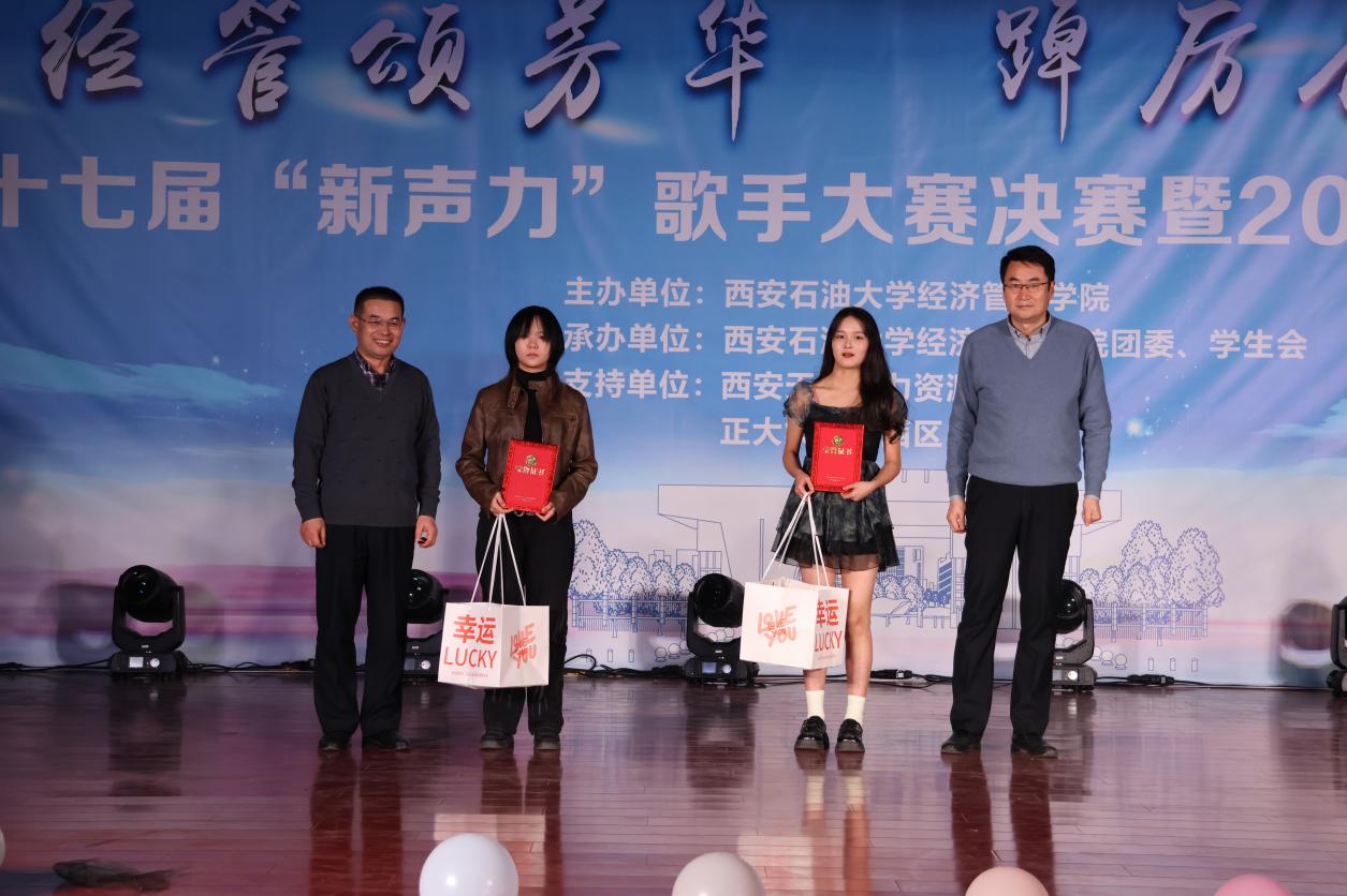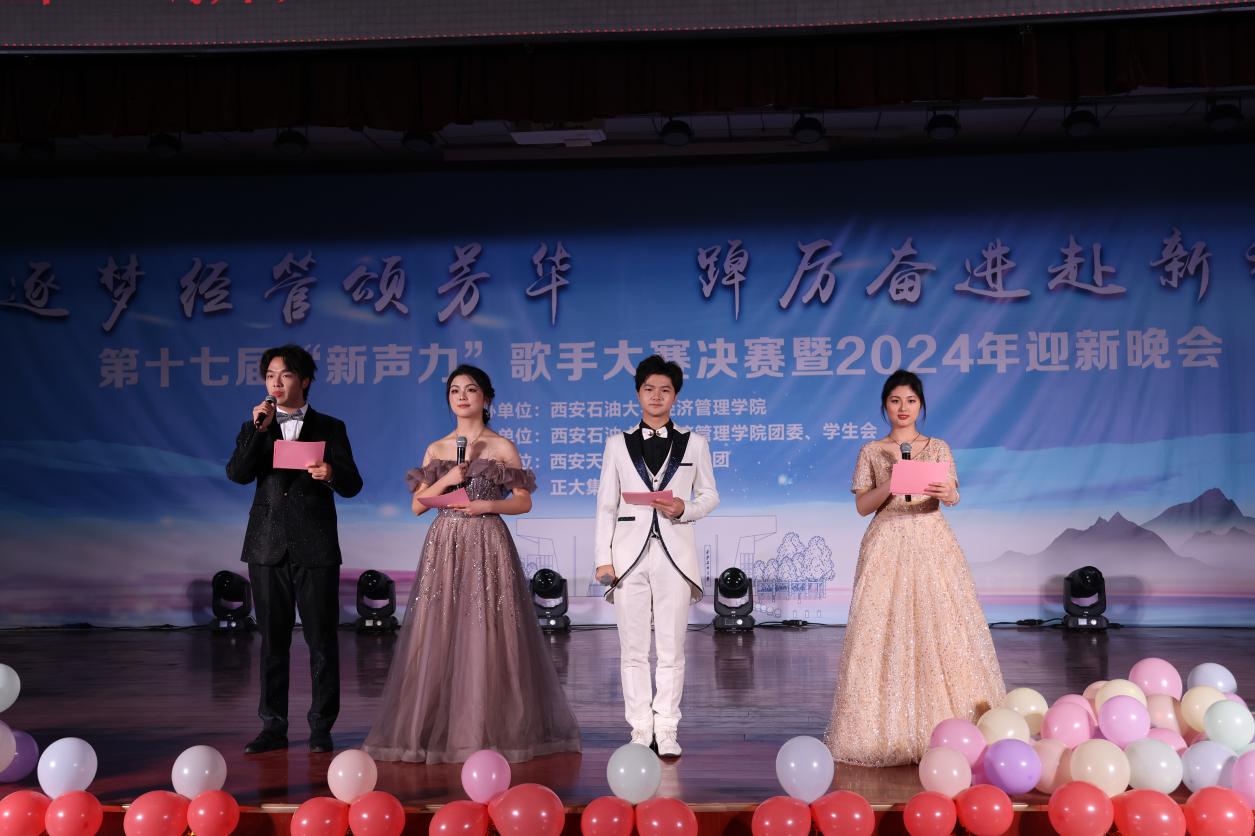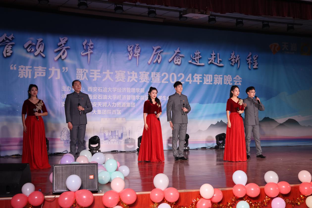 12月27日,經(jīng)濟(jì)管理學(xué)院第十七屆“新聲力”歌手大賽決賽暨2024年迎新晚會(huì)在我校鄠邑校區(qū)騰輝大學(xué)生活動(dòng)中心成功舉辦。晚會(huì)支持單位代表、天潤(rùn)人力集團(tuán)高級(jí)合伙人、陜西天潤(rùn)德凱信息技術(shù)有限公司總經(jīng)理、經(jīng)濟(jì)管理學(xué)院2012屆人力資源管理專(zhuān)業(yè)畢業(yè)生徐超應(yīng)邀出席。校黨委副書(shū)記、紀(jì)委書(shū)記王輝強(qiáng),總會(huì)計(jì)師樊曉民出席晚會(huì)并頒獎(jiǎng)。黨政辦公室(鄠邑校區(qū)管理辦公室)、統(tǒng)戰(zhàn)部、學(xué)生工作部、校團(tuán)委、計(jì)算機(jī)學(xué)院負(fù)責(zé)人,經(jīng)濟(jì)管理學(xué)院黨政負(fù)責(zé)同志、各教工黨支部書(shū)記、各系辦主任和師生代表500余人參加晚會(huì)。