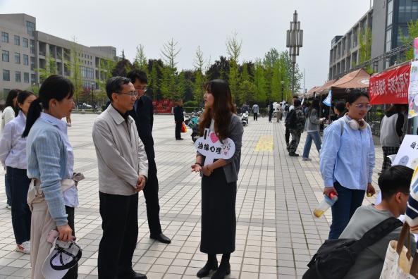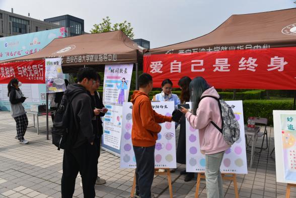 4月7日,陽(yáng)光柔和,微風(fēng)拂面,恰逢“世界衛(wèi)生日”,我校在鄠邑校區(qū)圖書(shū)館南廣場(chǎng)舉辦“油緣會(huì)”戶(hù)外心理體驗(yàn)活動(dòng)暨第九屆“陽(yáng)光護(hù)航”心理育人宣傳季的啟動(dòng)儀式,樹(shù)立“人人享健康共同促健康”理念,同時(shí),12個(gè)圍繞“五育并舉促進(jìn)心理健康”主題設(shè)置的活動(dòng)展臺(tái)也是我校作為教育部油緣成長(zhǎng)基地建設(shè)的一次亮相。校黨委副書(shū)記張木出席活動(dòng)?;顒?dòng)由學(xué)生工作部(處)(學(xué)生心理成長(zhǎng)指導(dǎo)中心)主辦,校醫(yī)院、地球科學(xué)與工程學(xué)院、電子工程學(xué)院、心理委員聯(lián)合協(xié)會(huì)、心理協(xié)會(huì)共同協(xié)辦。全校500余名師生員工參與體驗(yàn)。