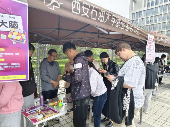 學(xué)生心理成長(zhǎng)指導(dǎo)中心組織的“以智慧心”展臺(tái)主題為“心理健康知識(shí)知多少”和“挑戰(zhàn)最強(qiáng)大腦”,在游戲中為同學(xué)們普及心理健康知識(shí),探索個(gè)人潛能,挑戰(zhàn)大腦極限。