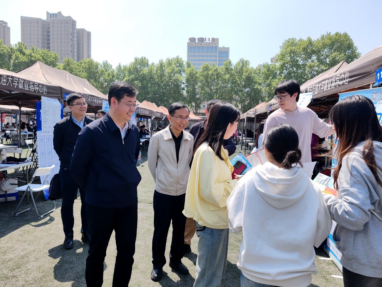 4月12日上午,我校2024屆畢業(yè)生春季校園系列第四場(chǎng)綜合雙選會(huì)在雁塔校區(qū)田徑場(chǎng)成功舉辦。校長(zhǎng)王進(jìn)富、校黨委副書記張木深入招聘會(huì)現(xiàn)場(chǎng)調(diào)研指導(dǎo)工作。學(xué)生工作部(處)(就業(yè)指導(dǎo)中心)、教務(wù)處相關(guān)負(fù)責(zé)人,各院(系)書記、院長(zhǎng)、副書記陪同調(diào)研指導(dǎo)。我校及西北大學(xué)、西安建筑科技大學(xué)、陜西科技大學(xué)、西安工程大學(xué)、西安體育學(xué)院等兄弟院校3200余名畢業(yè)生參加招聘會(huì)雙選活動(dòng)。