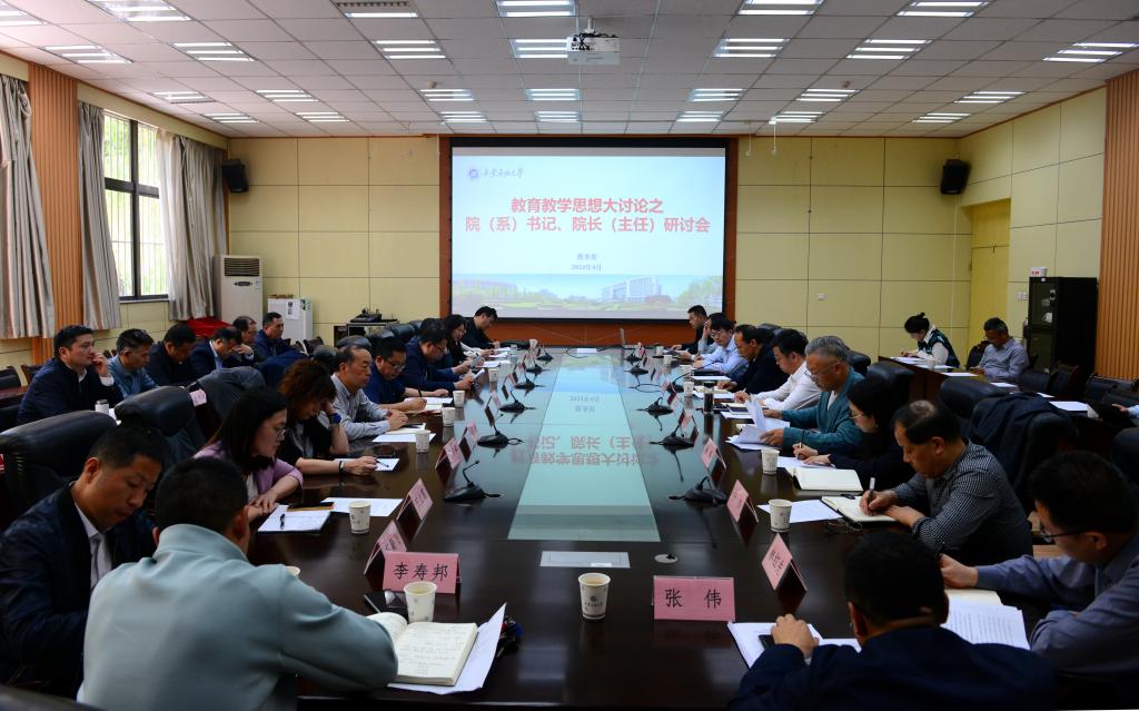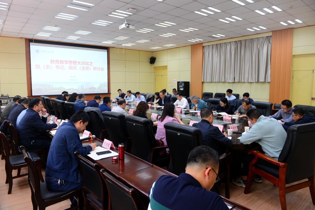 各院(系)書記、院長(主任)圍繞本科教育教學(xué)的目標與定位、“立德樹人”根本任務(wù)、專業(yè)建設(shè),教學(xué)改革、學(xué)生能力培養(yǎng)與評價、教師隊伍建設(shè)、教風(fēng)與學(xué)風(fēng)建設(shè)等內(nèi)容,結(jié)合自己學(xué)院(系)的工作,從“怎么想、怎么看、怎么干”三方面進行了深入的探討和交流。