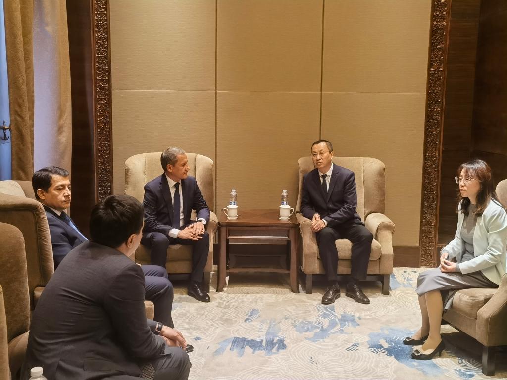 會(huì)談前,張榮軍與依赫提亞爾?尼亞孜穆拉多夫進(jìn)行了會(huì)談。