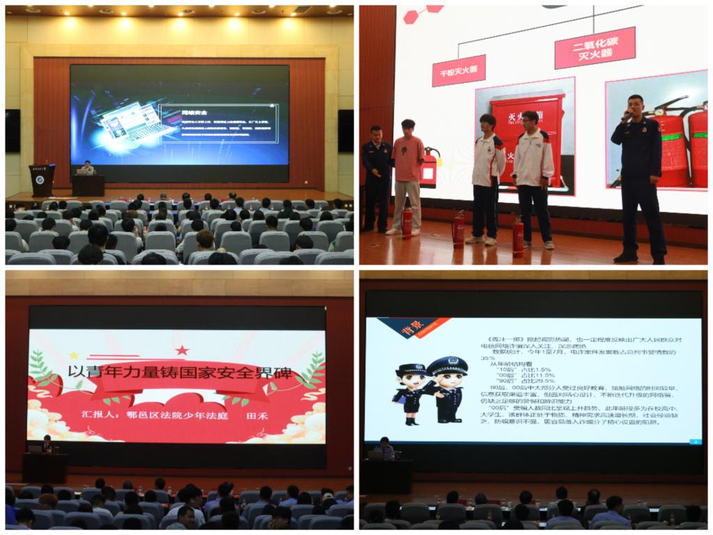 今年是習(xí)近平總書(shū)記提出總體國(guó)家安全觀(guān)10周年,為積極響應(yīng)國(guó)家號(hào)召,深入學(xué)習(xí)貫徹習(xí)近平總書(shū)記關(guān)于總體國(guó)家安全觀(guān)的重要論述,4月18日下午,校團(tuán)委會(huì)同鄠邑團(tuán)區(qū)委,聯(lián)合我校保衛(wèi)部、鄠邑區(qū)委國(guó)安辦、區(qū)委網(wǎng)信辦、區(qū)人民法院、公安鄠邑分局和區(qū)消防救援大隊(duì)在我校鄠邑校區(qū)弘石報(bào)告廳舉辦“國(guó)家安全 青春挺膺”國(guó)家安全主題團(tuán)日示范活動(dòng),鄠邑區(qū)團(tuán)員青年代表和我校師生代表共計(jì)400余人參加活動(dòng)。