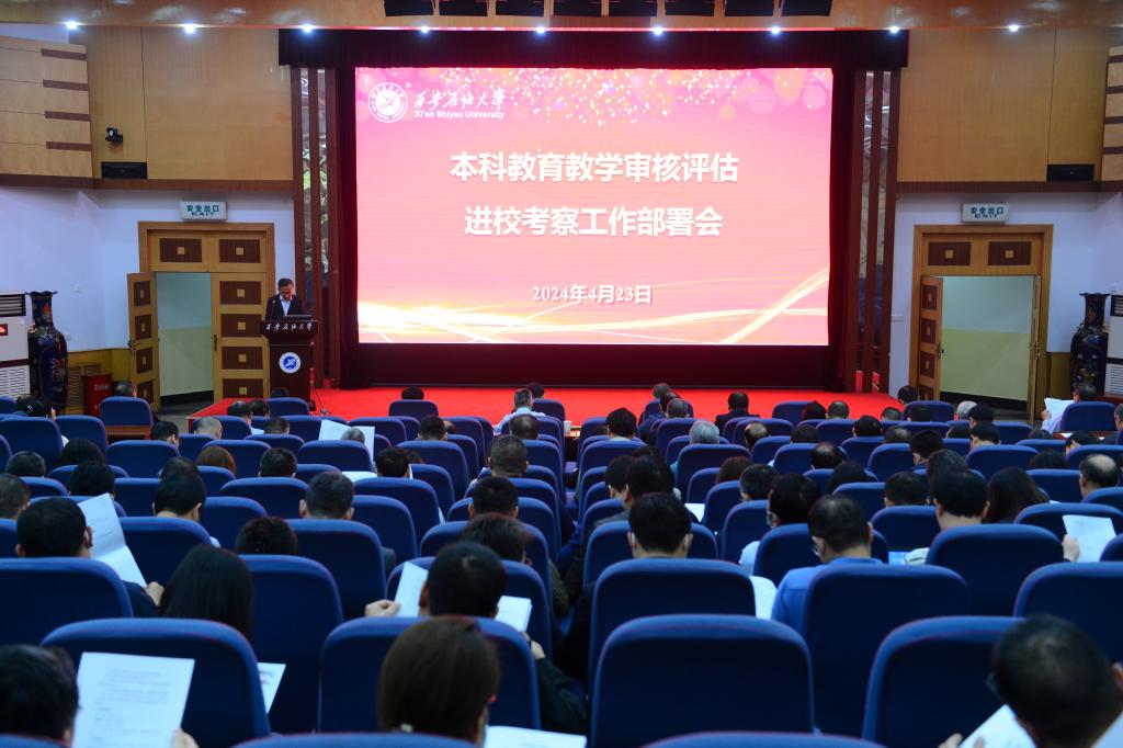 為做好2024年4月29日開始的本科教育教學(xué)審核評估進(jìn)校評估考察工作,4月23日上午,學(xué)校在雁塔校區(qū)會議中心學(xué)術(shù)報(bào)告廳召開本科教育教學(xué)審核評估進(jìn)??疾旃ぷ鞑渴饡?。全體校領(lǐng)導(dǎo),校本科教學(xué)督導(dǎo)組組長、副組長,全體處級干部參加了會議。會議由校黨委副書記張木主持。