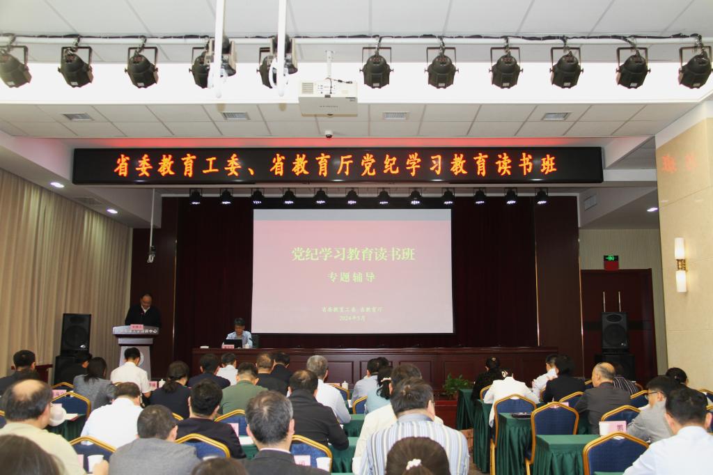 按照中共中央辦公廳《關(guān)于在全黨開(kāi)展黨紀(jì)學(xué)習(xí)教育的通知》要求,省委教育工委、省教育廳高度重視、精心籌備,率先對(duì)廳機(jī)關(guān)所有處級(jí)干部開(kāi)展學(xué)習(xí)教育,學(xué)習(xí)貫徹習(xí)近平總書(shū)記關(guān)于黨紀(jì)學(xué)習(xí)教育的重要講話和重要指示精神,學(xué)習(xí)新修訂的《中國(guó)共產(chǎn)黨紀(jì)律處分條例》并開(kāi)展交流研討。讀書(shū)班采取專(zhuān)題輔導(dǎo)、分組領(lǐng)學(xué)、研討交流、警示教育相結(jié)合的方式進(jìn)行。邀請(qǐng)西北大學(xué)法學(xué)院潘懷平教授作新修訂的《中國(guó)共產(chǎn)黨紀(jì)律處分條例》解讀輔導(dǎo)。省紀(jì)委委員、省紀(jì)委監(jiān)委駐省教育廳紀(jì)檢監(jiān)察組組長(zhǎng)、省委教育工委委員趙軍作專(zhuān)題警示教育。讀書(shū)班通過(guò)專(zhuān)家學(xué)者解讀、原原本本研讀,引導(dǎo)全體黨員干部把遵規(guī)守紀(jì)牢牢刻印在心,深刻領(lǐng)悟“兩個(gè)確立”的決定性意義,堅(jiān)決做到“兩個(gè)維護(hù)”,切實(shí)把思想和行動(dòng)統(tǒng)一到黨中央決策部署上來(lái)。