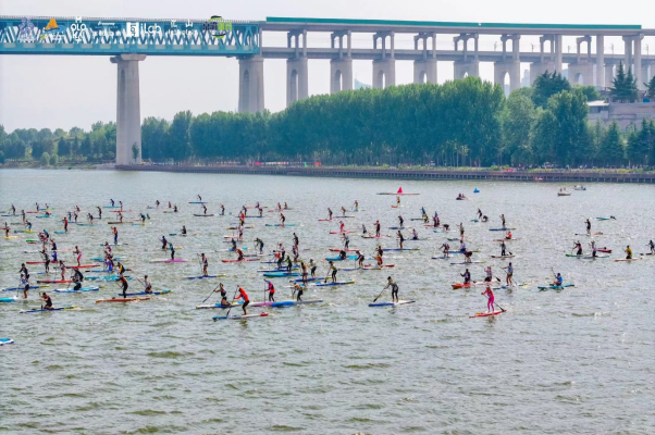 據(jù)悉,本次賽事在黃河陜州區(qū)段水域舉行,由國家體育總局水上運(yùn)動管理中心、河南省體育局、省體育總會、三門峽市人民政府主辦,三門峽市體育局和陜州區(qū)政府承辦,設(shè)置了公開組、大師組、卡胡納組、高校組及青少年組等多個組別。競賽涵蓋男女個人賽、個人200米競速賽、200米趴板劃水賽、8公里比賽以及團(tuán)體200米接力、200米龍板賽等多個項(xiàng)目,為槳板愛好者提供擊水黃河、浪遏飛板的平臺。共有來自全國各地的700名槳板賽選手和體育運(yùn)動愛好者相聚碧水黃河,共同體驗(yàn)沿黃生態(tài)與水上運(yùn)動的激情碰撞,感受“黃河明珠、天鵝之城”與“體育強(qiáng)國、健康中國”的激昂融合。