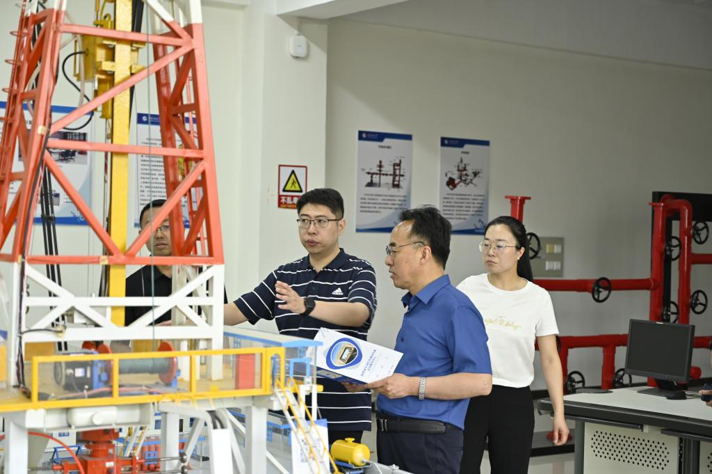 會前,校友工作與合作交流處負(fù)責(zé)人陪同張建軍一行參觀了我校逸夫工程訓(xùn)練中心、陜西省石油石化虛擬仿真實驗教學(xué)中心,深入了解了地球科學(xué)巖石礦物標(biāo)本、鉆井工程、采油工程、油氣儲運工程等實驗室建設(shè)情況。