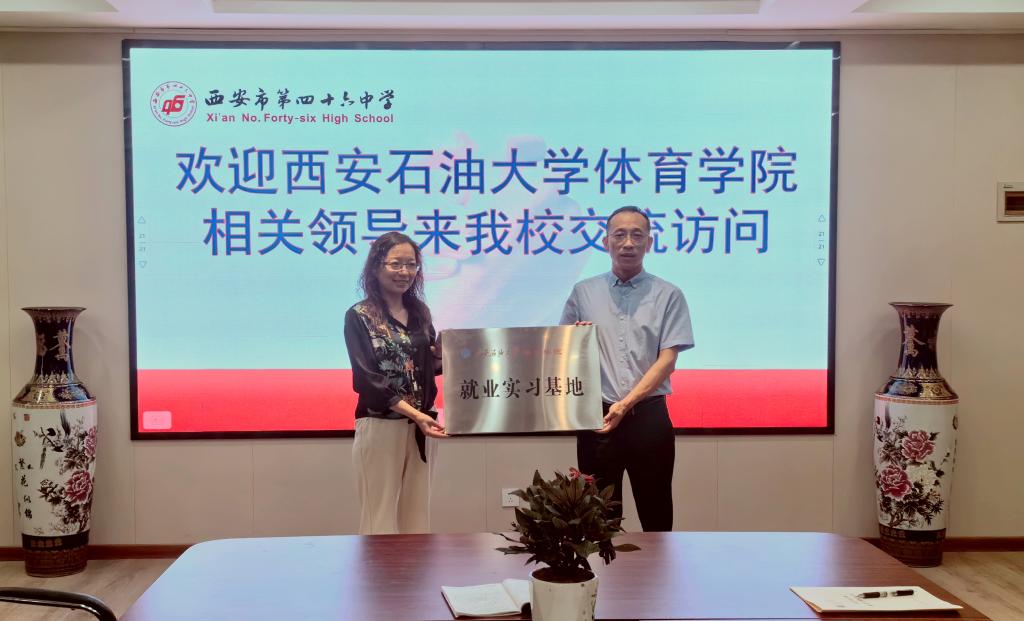座談會(huì)后,張君濤為第四十六中學(xué)頒授了“西安石油大學(xué)就業(yè)實(shí)習(xí)基地”牌匾,并贈(zèng)送了紀(jì)念品。茍毅飛代表體育學(xué)院與第四十六中學(xué)簽訂了共建就業(yè)實(shí)習(xí)基地協(xié)議。