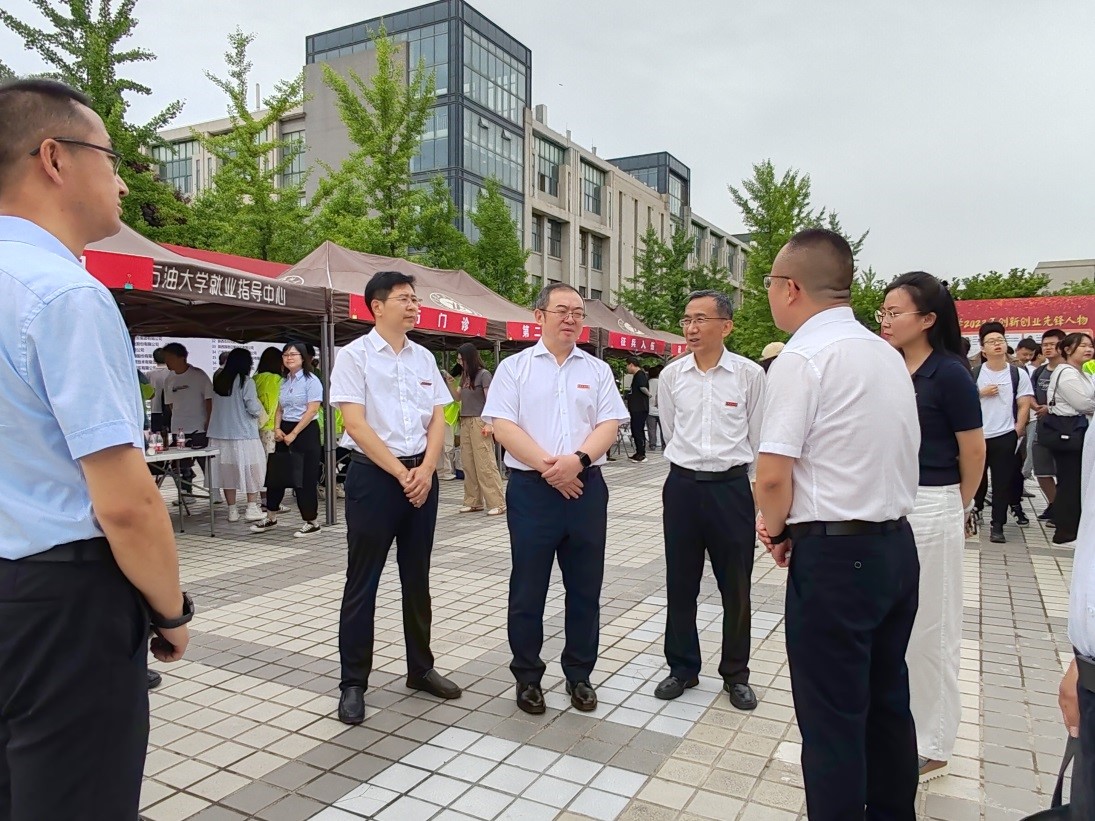 常江、王進(jìn)富、張木一行深入雙選會(huì)現(xiàn)場(chǎng)。詢問了企業(yè)的招聘需求,對(duì)用人單位長(zhǎng)期以來給予學(xué)校就業(yè)工作的支持表示感謝,并希望雙方能夠進(jìn)一步加強(qiáng)校企合作,共同推動(dòng)人才培養(yǎng)和就業(yè)工作。與求職學(xué)生親切交談,翻閱畢業(yè)生簡(jiǎn)歷,詳細(xì)了解求職意向和求職進(jìn)展,鼓勵(lì)指導(dǎo)他們要樹立求職信心,秉承為人誠(chéng)實(shí)、基礎(chǔ)扎實(shí)、作風(fēng)樸實(shí)、工作踏實(shí)、開拓創(chuàng)新的“四實(shí)一新”優(yōu)良品質(zhì),發(fā)揚(yáng)鐵人精神,端正就業(yè)觀念,將小我融入大我,將個(gè)人發(fā)展同國(guó)家社會(huì)發(fā)展相結(jié)合,積極投身重點(diǎn)領(lǐng)域、重點(diǎn)行業(yè)、城鄉(xiāng)基層和中小微企業(yè)就業(yè)創(chuàng)業(yè)。