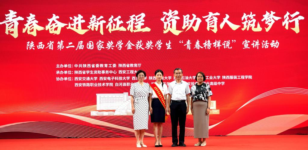 6月13日下午,陜西省第二屆國家獎(jiǎng)學(xué)金獲獎(jiǎng)學(xué)生“青春榜樣說”宣講活動(dòng)在西安工程大學(xué)臨潼校區(qū)舉行。教育部全國學(xué)生資助管理中心副主任涂義才出席活動(dòng)并致辭。省委教育工委委員、省教育廳副廳長何玉麒出席并講話。