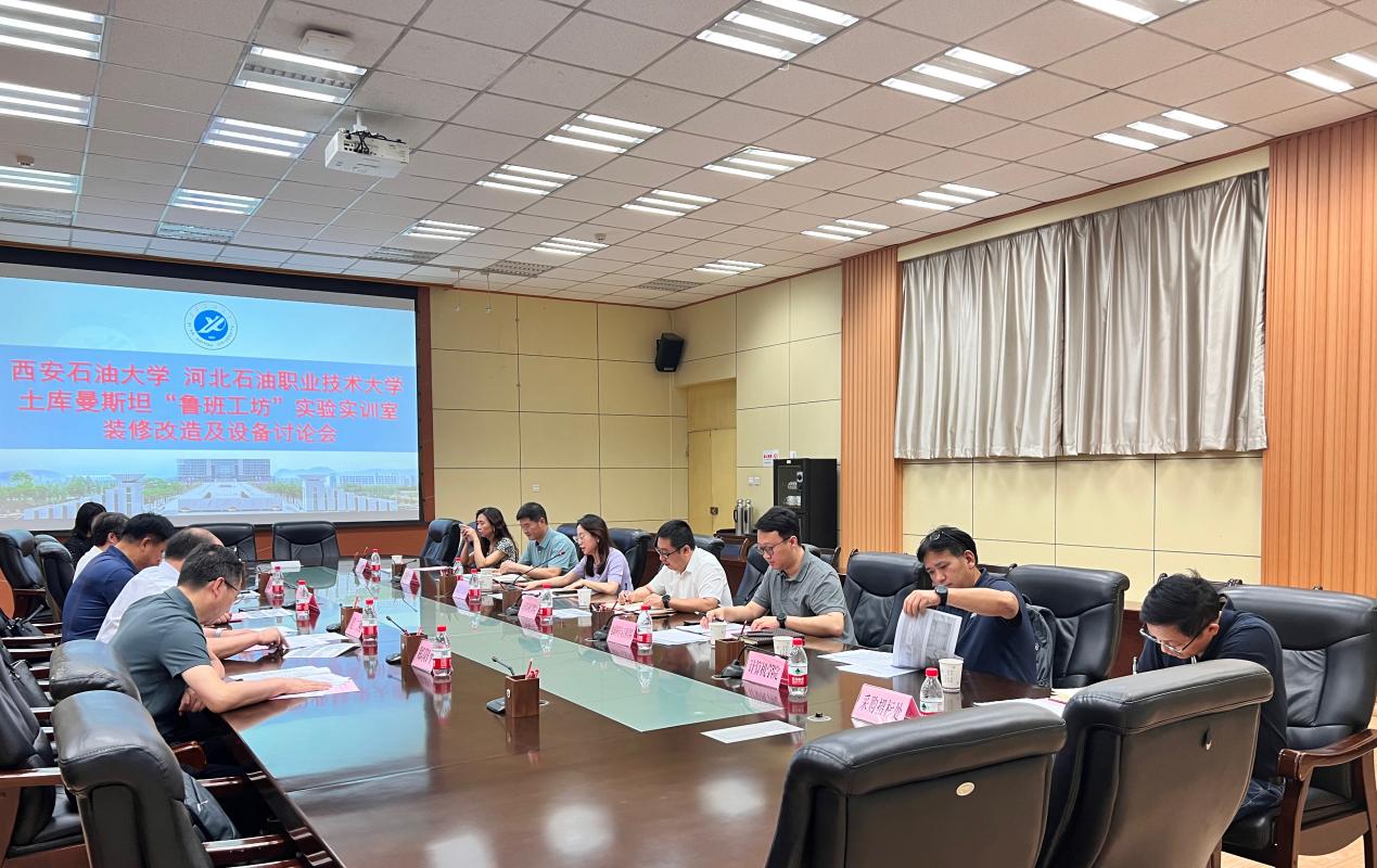 6月14日上午,我校在雁塔校區(qū)會(huì)議中心第一會(huì)議室舉行土庫曼斯坦“魯班工坊”實(shí)驗(yàn)實(shí)訓(xùn)室裝修改造及設(shè)備討論會(huì)。河北石油職業(yè)技術(shù)大學(xué)計(jì)算機(jī)系主任王學(xué)軍、國際交流中心主任吳二剛、石油工程系主任張紅靜、計(jì)算機(jī)系副主任鄭陽平等一行來校參加會(huì)議。副校長張榮軍會(huì)見了河北石油職業(yè)技術(shù)大學(xué)來訪代表。國際合作與交流處處長董皓主持討論會(huì),國有資產(chǎn)處、采購招標(biāo)處、地球科學(xué)與工程學(xué)院、計(jì)算機(jī)學(xué)院相關(guān)負(fù)責(zé)人及工作人員參會(huì)。