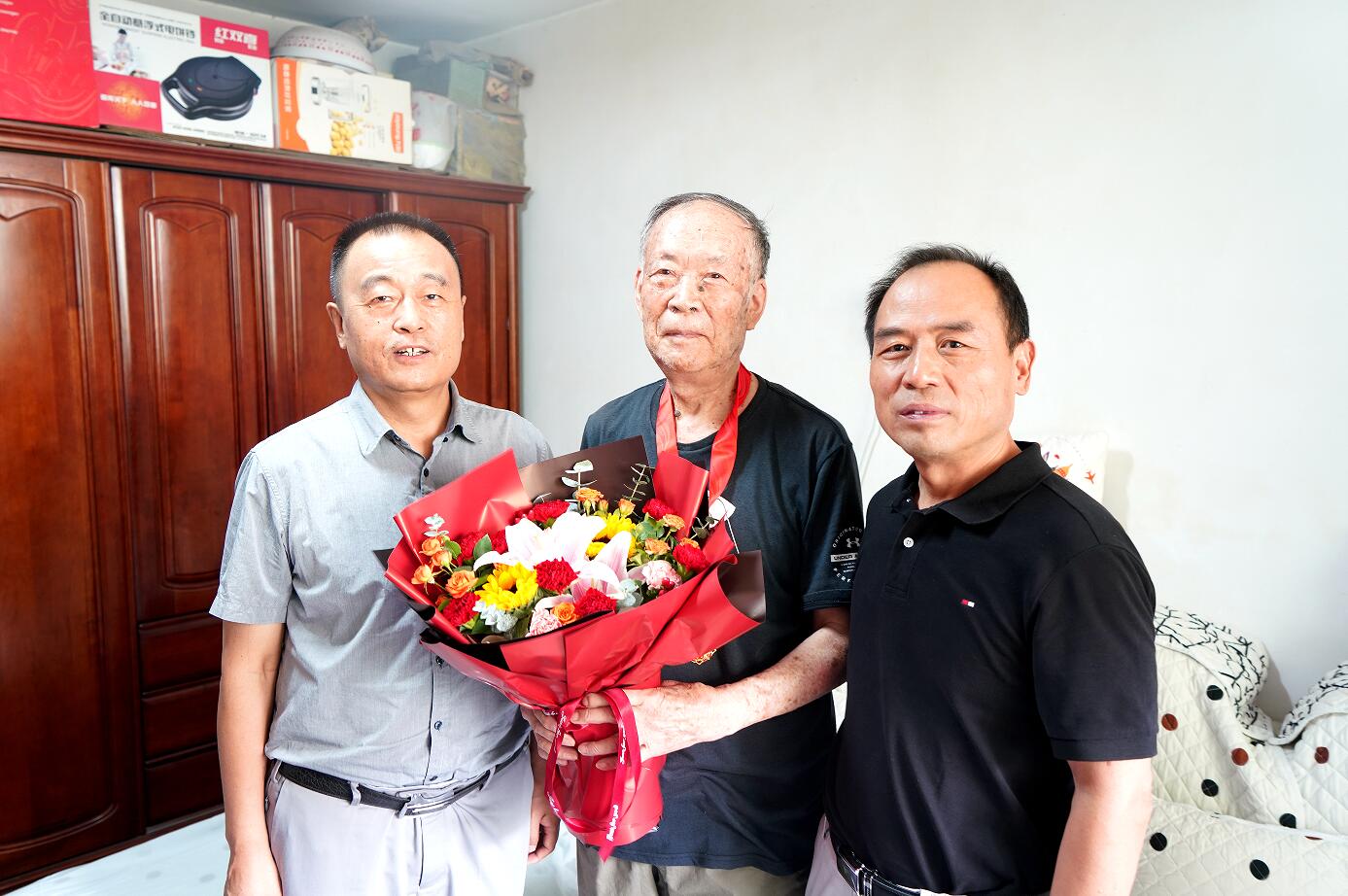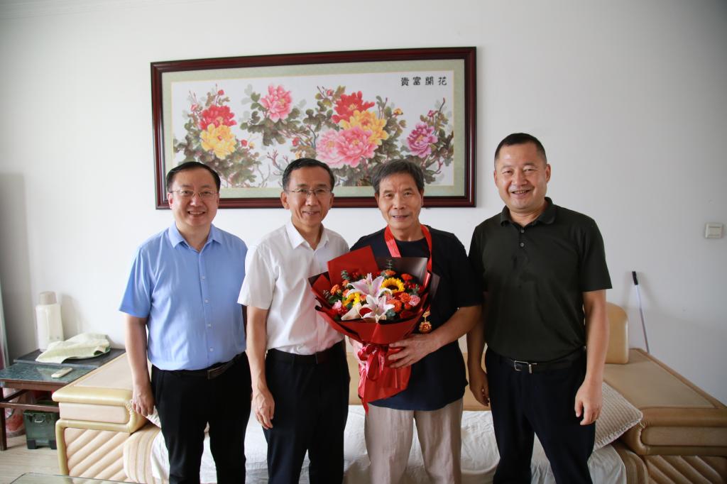 在中國(guó)共產(chǎn)黨建黨103周年來(lái)臨之際,為弘揚(yáng)黨的光榮傳統(tǒng)和優(yōu)良作風(fēng),加強(qiáng)黨內(nèi)關(guān)懷、傳遞組織溫暖,6月28日上午,校黨政領(lǐng)導(dǎo)常江、王進(jìn)富、張木、王輝強(qiáng)、程永清帶隊(duì)走訪慰問(wèn)黨齡達(dá)到50周年且表現(xiàn)優(yōu)秀的在校居住的老黨員,為他們頒發(fā)“光榮在黨50年”紀(jì)念章,并送上鮮花和慰問(wèn)品,代表校黨委向老黨員送去黨的關(guān)懷和節(jié)日的問(wèn)候。學(xué)校黨委辦公室(校長(zhǎng)辦公室)、紀(jì)檢監(jiān)察機(jī)構(gòu)、黨委組織部、黨委宣傳部、黨委統(tǒng)戰(zhàn)部、離退休工作處負(fù)責(zé)人陪同慰問(wèn)。
