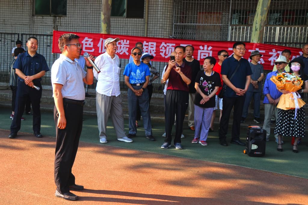 離退休黨總支書記、離退休工作處處長茍金虎宣讀了比賽規(guī)則。比賽規(guī)則是80周歲及以上年齡段的老同志繞田徑場一周,限時10分鐘以內(nèi)完成。70至79周歲的老同志男、女分組,繞田徑場兩周,在15分鐘以內(nèi)完成。70周歲以下的老同志男、女分組,繞田徑場三周,在20分鐘內(nèi)完成。
