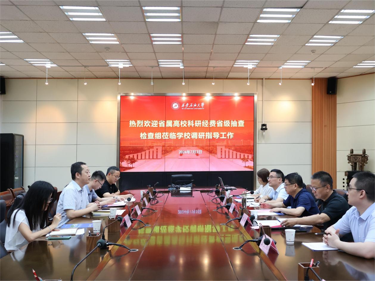 省教育廳財(cái)務(wù)處副處長孫大明代表檢查組對(duì)此次高校科研經(jīng)費(fèi)省級(jí)抽查工作來校檢查的基本目標(biāo)和要求做了說明。他表示,此次專項(xiàng)檢查是為深入貫徹落實(shí)教育領(lǐng)域群眾身邊腐敗和作風(fēng)問題專項(xiàng)整治工作精神,進(jìn)一步健全高等學(xué)校內(nèi)部科研經(jīng)費(fèi)管理體制和運(yùn)行機(jī)制,提升科研經(jīng)費(fèi)管理水平,提高科研經(jīng)費(fèi)使用效益,及時(shí)發(fā)現(xiàn)、糾正和處理科研經(jīng)費(fèi)使用過程中存在的違規(guī)違紀(jì)問題,促進(jìn)我省高??蒲惺聵I(yè)健康、穩(wěn)定和高質(zhì)量發(fā)展。此次專項(xiàng)工作,一是檢查自查自糾落實(shí)情況,二是從制度機(jī)制建設(shè)、科研項(xiàng)目管理、經(jīng)費(fèi)預(yù)算管理、經(jīng)費(fèi)支出管理四個(gè)方面,以聽取匯報(bào)、查閱資料、實(shí)地查看、個(gè)別訪談為主要方式,對(duì)學(xué)??蒲薪?jīng)費(fèi)管理情況進(jìn)行綜合檢查。他強(qiáng)調(diào),學(xué)校要認(rèn)真落實(shí)上級(jí)管理要求,不斷強(qiáng)化科研經(jīng)費(fèi)管理工作,有效提升學(xué)??蒲许?xiàng)目及經(jīng)費(fèi)管理水平,進(jìn)一步推動(dòng)學(xué)??蒲薪?jīng)費(fèi)管理工作科學(xué)化、制度化、規(guī)范化發(fā)展。