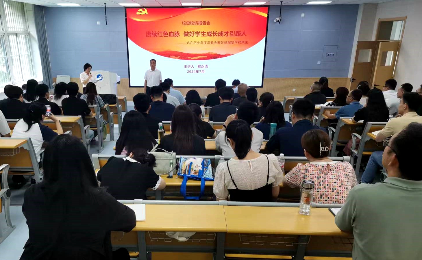 7月5日下午,校黨委副書記程永清作題為《賡續(xù)紅色血脈 做好學(xué)生成長成才引路人》專題培訓(xùn),全體輔導(dǎo)員參訓(xùn)學(xué)習(xí)。