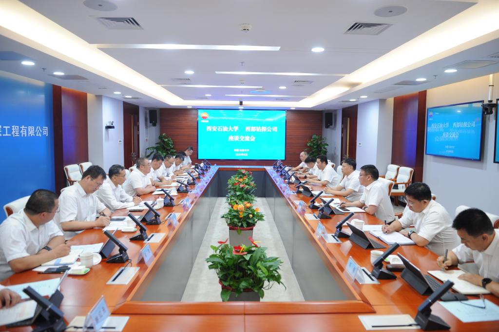 在中國石油西部鉆探工程有限公司走訪期間,公司執(zhí)行董事、黨委書記潘登代表公司對常江、校長王進(jìn)富一行來訪表示熱烈歡迎,對學(xué)校多年來在人才、科技等方面給予公司的重要支持表示感謝。雙方進(jìn)行了座談交流,針對人才培養(yǎng)、科研攻關(guān)、基地建設(shè)、學(xué)生就業(yè)、繼續(xù)教育培訓(xùn)等多個領(lǐng)域深入交流,初步達(dá)成多個合作意向。該公司黨委委員、副總經(jīng)理唐青雋,副總工程師王軍平等參加座談交流。
