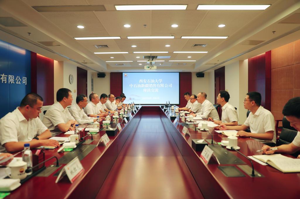 在中國石油新疆銷售有限公司走訪交流期間,公司黨委副書記、總經(jīng)理黃劍宇等企業(yè)領(lǐng)導(dǎo)會見常江、王進(jìn)富一行,并進(jìn)行工作座談。黃劍宇感謝學(xué)校在長期的合作過程中,為公司提供了重要的人才、科技支撐。他表示,下一步將圍繞科研攻關(guān)、創(chuàng)新人才培養(yǎng)、推進(jìn)智慧銷售構(gòu)建大營銷體系、提升學(xué)歷教育培訓(xùn)等方面,進(jìn)一步增加合作力度、拓展合作廣度、加大合作深度,共同實(shí)現(xiàn)高質(zhì)量發(fā)展。