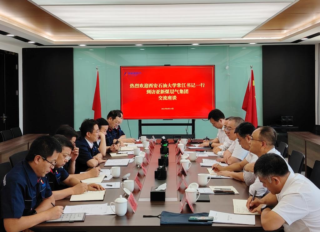 在新疆亞新煤層氣集團(tuán)走訪期間,集團(tuán)黨委書記、董事長崔玉淼熱情接待了常江、王進(jìn)富一行。崔玉淼熱烈歡迎學(xué)校領(lǐng)導(dǎo)半年內(nèi)的再次正式來訪,對學(xué)校高度重視與亞新煤層氣開展校企合作表示高度贊賞和衷心感謝。在座談會上,雙方圍繞前期在天然氣、煤層氣“雙氣共采”技術(shù)、煤炭地下氣化、導(dǎo)向鉆井工具、壓裂改造技術(shù)、區(qū)域地質(zhì)構(gòu)圖等多個合作領(lǐng)域的項(xiàng)目進(jìn)展情況進(jìn)行交流和探討,并就雙方共建勘探開發(fā)協(xié)同創(chuàng)新研究院,在基礎(chǔ)理論和關(guān)鍵技術(shù)共同研究、共建企校合作團(tuán)隊(duì)、聯(lián)合開展重大項(xiàng)目論證、聯(lián)合攻關(guān)重大技術(shù)難題、研發(fā)重大裝備、教師“沉浸式”入企、企業(yè)導(dǎo)師聘任等領(lǐng)域開展實(shí)質(zhì)性合作交換了意見和建議。該集團(tuán)黨委委員、副總經(jīng)理韋波,總地質(zhì)師梁則亮,集團(tuán)特級專家王一兵等企業(yè)領(lǐng)導(dǎo)參加了座談交流。
