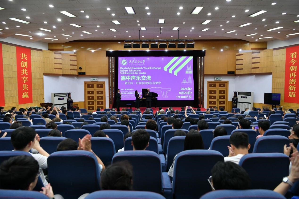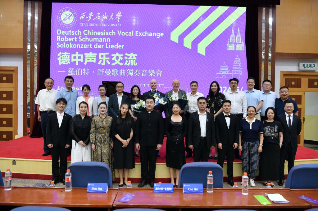 8月20日晚,由我校主辦的德中聲樂交流——羅伯特?舒曼藝術歌曲專場音樂會在雁塔校區(qū)學術報告廳成功舉辦。德國美茵茨-威斯巴登德中友協(xié)理事會主席、德中友協(xié)聯(lián)合會前主席庫爾特?卡斯特(Kurt Karst)先生,陜西省友協(xié)專職副會長曹輝,我校副校長趙健出席并觀看聲樂會。陜西省友協(xié)、陜西省僑聯(lián)、中共西安市委統(tǒng)戰(zhàn)部等部門有關人員,在校教職工、家屬及暑期留校中外學生等300余人現(xiàn)場觀看。本次活動由國際合作與交流處積極對接和申報,與音樂系聯(lián)合承辦。
