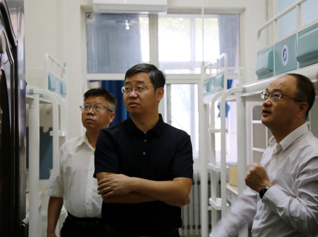 王進(jìn)富帶隊(duì)走進(jìn)東區(qū)15號(hào)和16號(hào)新生宿舍樓,聽(tīng)取了后勤處負(fù)責(zé)同志關(guān)于新生宿舍準(zhǔn)備工作的匯報(bào)。在檢查中他強(qiáng)調(diào),宿舍的環(huán)境直接會(huì)影響到學(xué)生的學(xué)習(xí)和生活質(zhì)量,后勤處等相關(guān)部門(mén)必須全力以赴為學(xué)生提供一個(gè)安全、舒適、衛(wèi)生、便利的居住環(huán)境。檢查中,王進(jìn)富和宿舍樓前偶遇的新生及家長(zhǎng)進(jìn)行了親切交談,并合影留念。