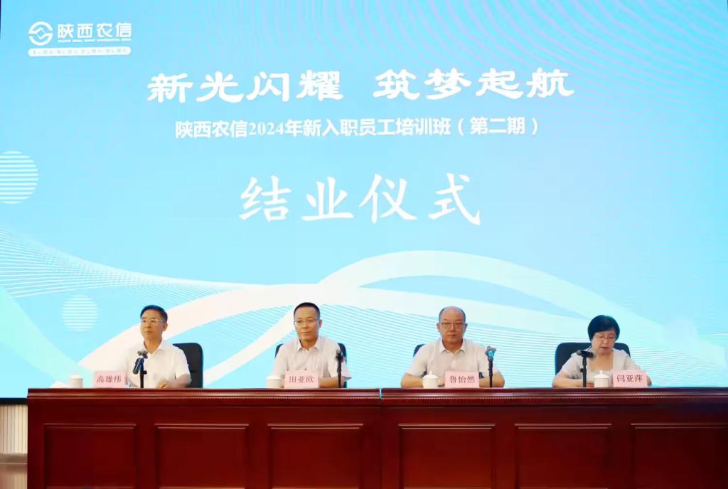 8月29日上午,陜西農(nóng)信“新光閃耀 筑夢起航”2024年新入職員工培訓(xùn)(第二期)在我校明德校區(qū)報告廳舉行結(jié)業(yè)儀式。陜西省農(nóng)村信用社聯(lián)合社(以下稱“省聯(lián)社”)黨委副書記、主任田亞歐,省聯(lián)社黨委副書記魯怡然出席儀式。省聯(lián)社領(lǐng)導(dǎo)、集訓(xùn)隊工作人員及全體學(xué)員對我校工作人員在培訓(xùn)期間的精心組織和辛勤付出給予了高度評價。
