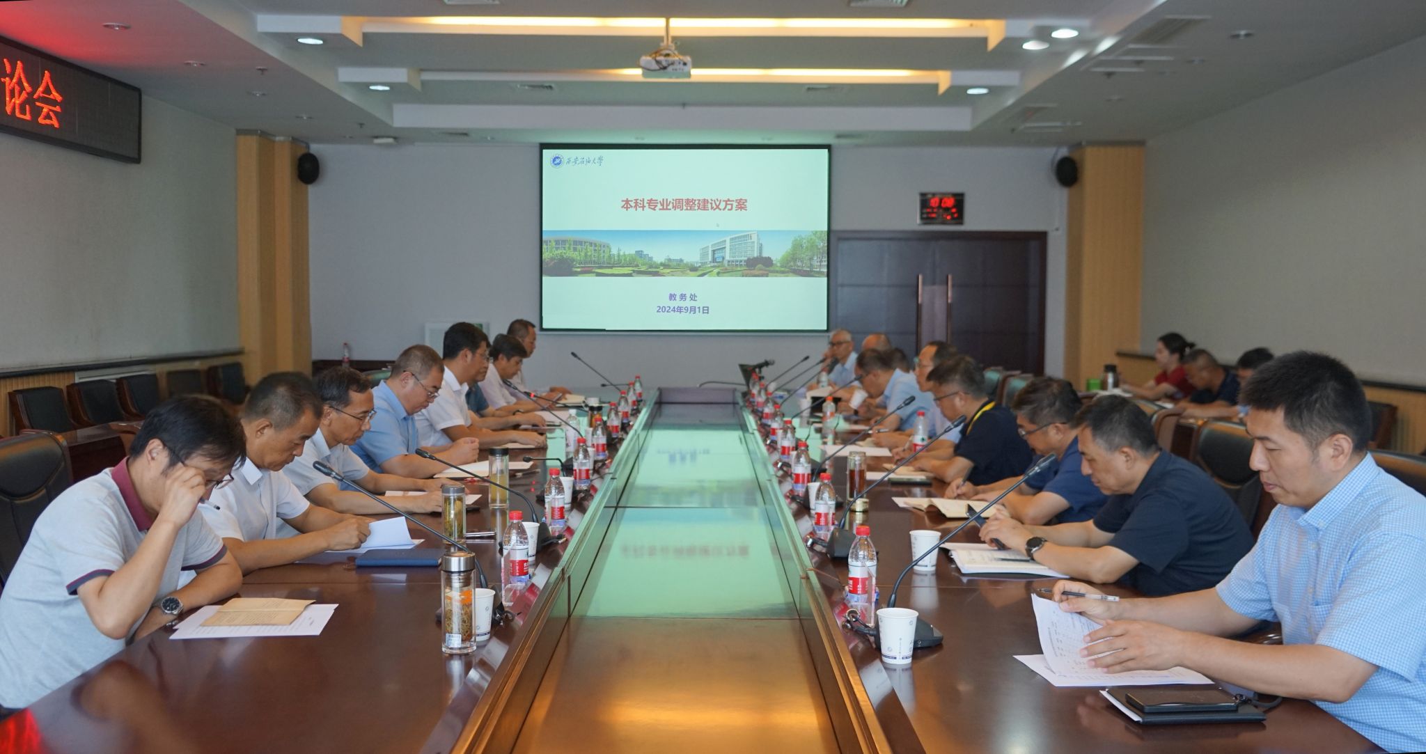 王進富指出,本科專業(yè)優(yōu)化調(diào)整是深化新時代教育教學改革,推動學校教育教學高質(zhì)量發(fā)展的重要舉措,是貫徹落實學校“十四五”規(guī)劃及第三次黨代會精神的一項重點工作。學校將持續(xù)推進專業(yè)調(diào)整優(yōu)化,構建與學校辦學定位、辦學特色相匹配且符合社會發(fā)展需求的專業(yè)體系。他對后續(xù)推進專業(yè)動態(tài)優(yōu)化調(diào)整工作提出具體要求:一是要堅持優(yōu)化學科專業(yè)結構,立足于學校總體發(fā)展目標,注重以工學為主干、文理為支撐,拓寬人才培養(yǎng)方向,做好專業(yè)人才培養(yǎng)和調(diào)整規(guī)劃頂層設計。二是要充分結合學校辦學定位,突出學校辦學特色,結合社會發(fā)展趨勢和行業(yè)階段性發(fā)展狀況,堅持學科專業(yè)一體化建設,改革人才培養(yǎng)模式。三是要超前布局未來新興學科專業(yè),關注新增學科發(fā)展方向及主干學科發(fā)展布局,堅持“寬口徑,厚基礎”人才培養(yǎng)模式,分層次優(yōu)化學科專業(yè)。四是要壓實責任、上下聯(lián)動,圍繞行業(yè)鏈發(fā)展形勢,對于不適應社會發(fā)展和行業(yè)需求的學科專業(yè)應予以優(yōu)化,摸清發(fā)展趨勢,拓寬人才培養(yǎng)方向。五是要強化多部門協(xié)同聯(lián)動,教務處、發(fā)展規(guī)劃處、科研處、研究生院(學科建設辦公室)等職能部門要加強合作,并嚴格按照常書記的要求,把工作做扎實,把發(fā)展形勢講透,把溝通協(xié)作做好,把調(diào)整方案做細,把聯(lián)動機制做實,把各項工作做到位。