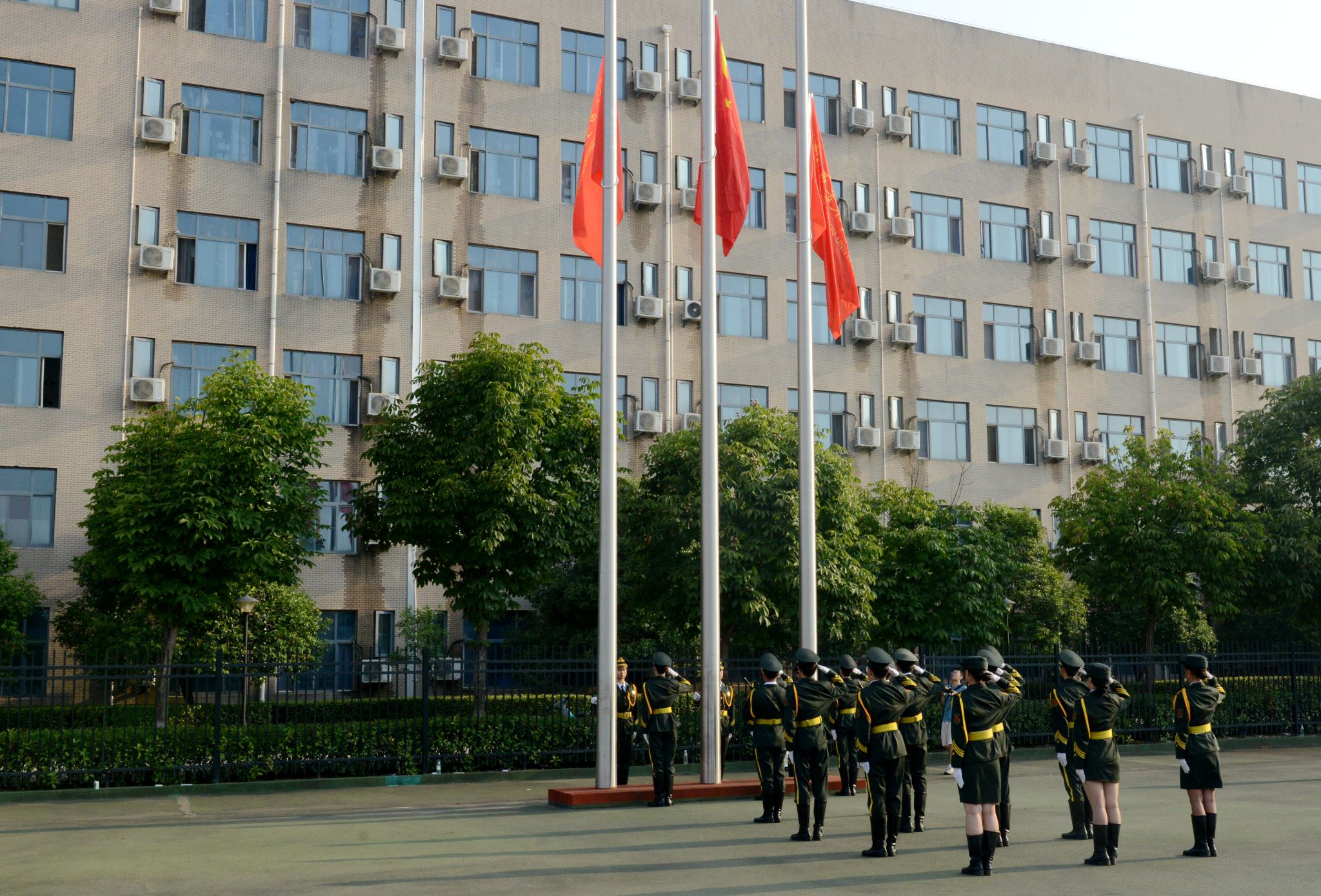 開學典禮在莊嚴的國歌聲中拉開帷幕。隨后,?;涨f重入場。