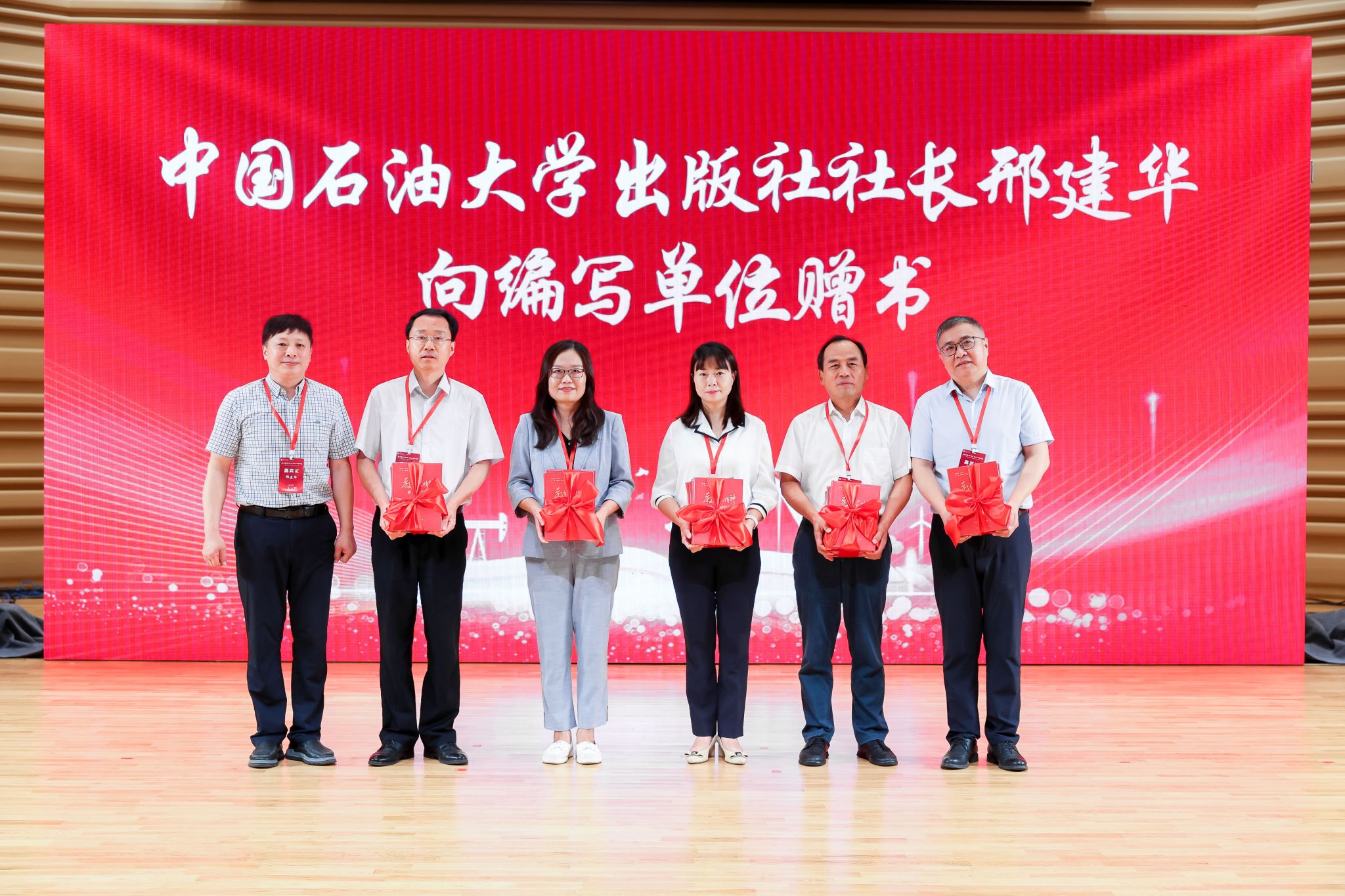 中國(guó)石油大學(xué)出版社為首批出版叢書(shū)的5所高校贈(zèng)書(shū),我校黨委宣傳部部長(zhǎng)趙承勝接受贈(zèng)書(shū)。