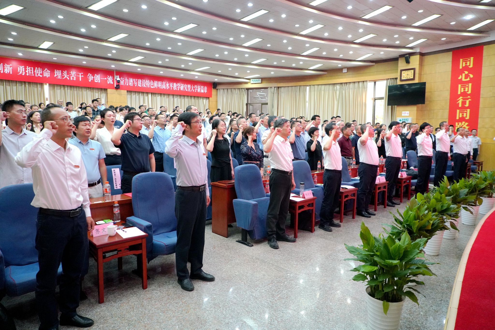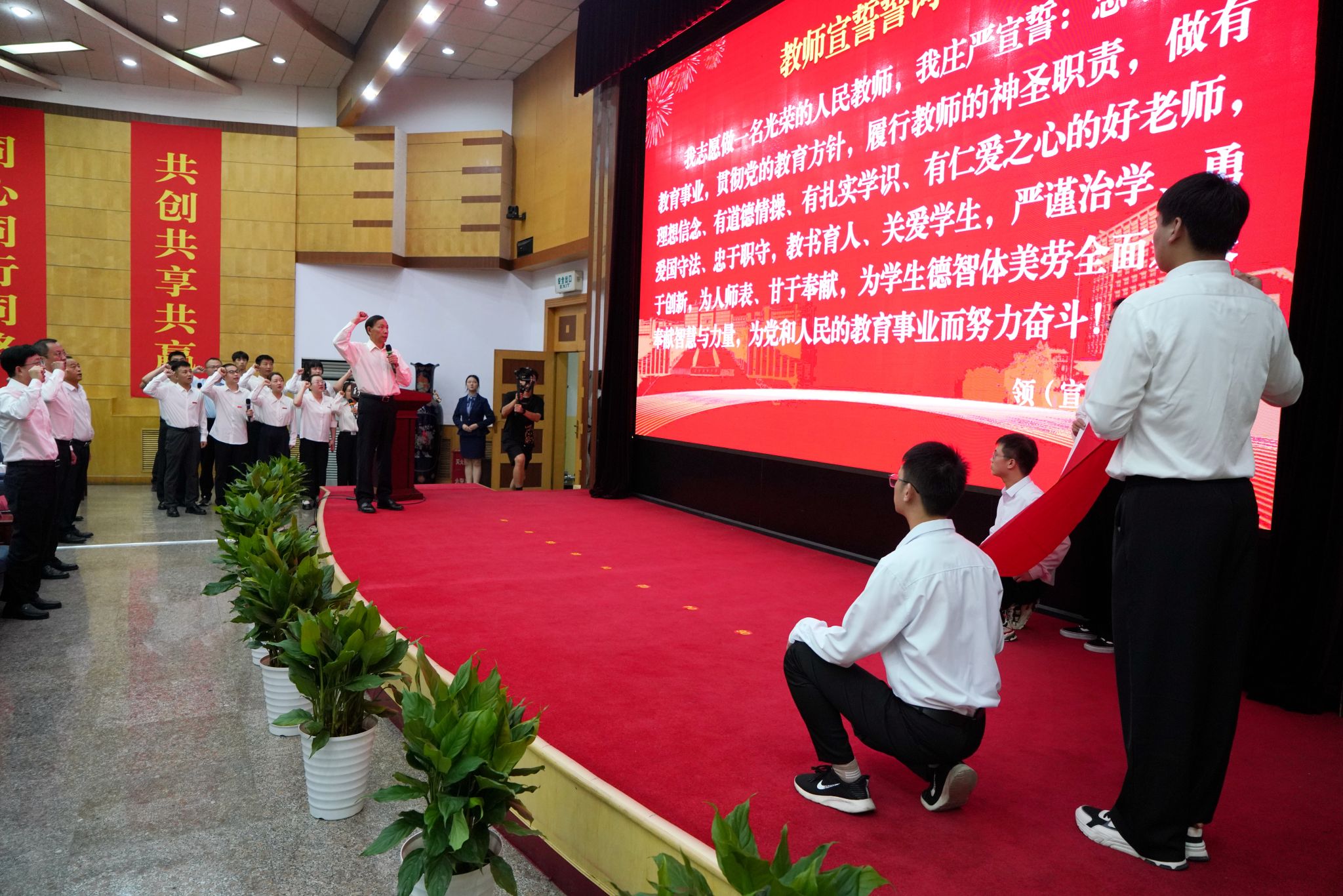立德樹人育桃李,櫛風沐雨做園丁。在教師宣誓儀式上,全體參會人員集體宣誓,表達努力成為“四有好老師”,為學生德智體美勞全面發(fā)展奉獻智慧與力量、為黨和人民的教育事業(yè)而努力奮斗的決心。