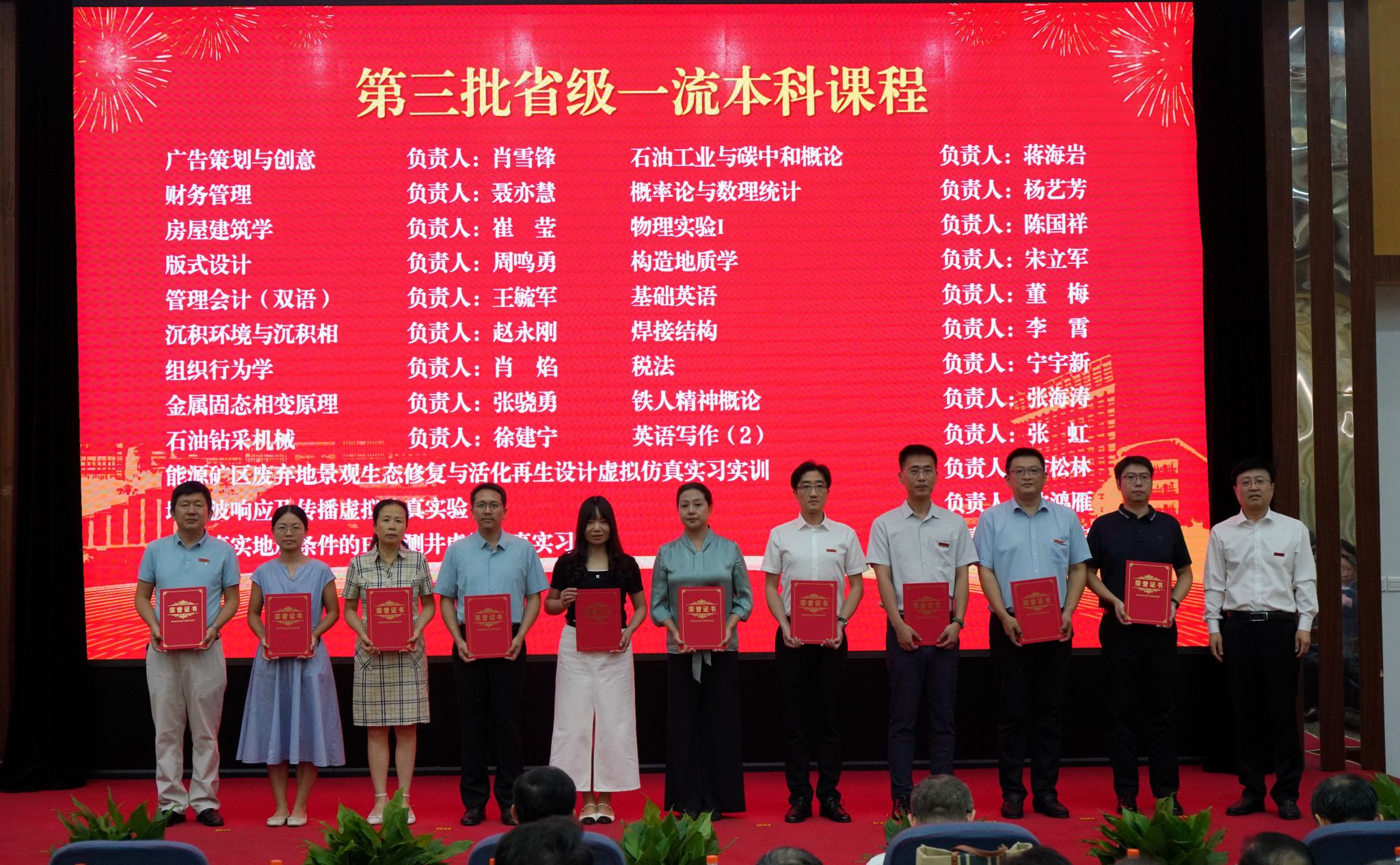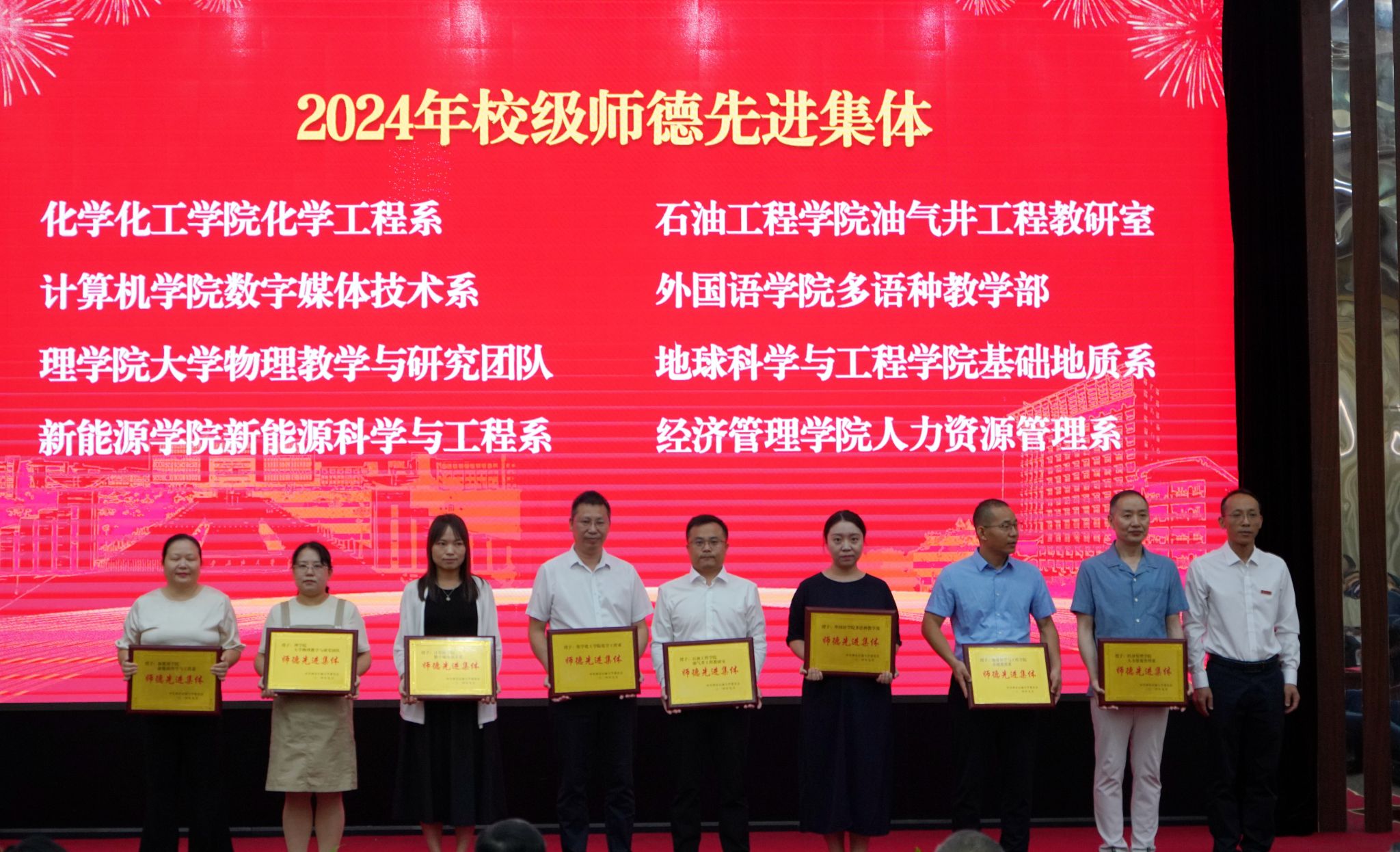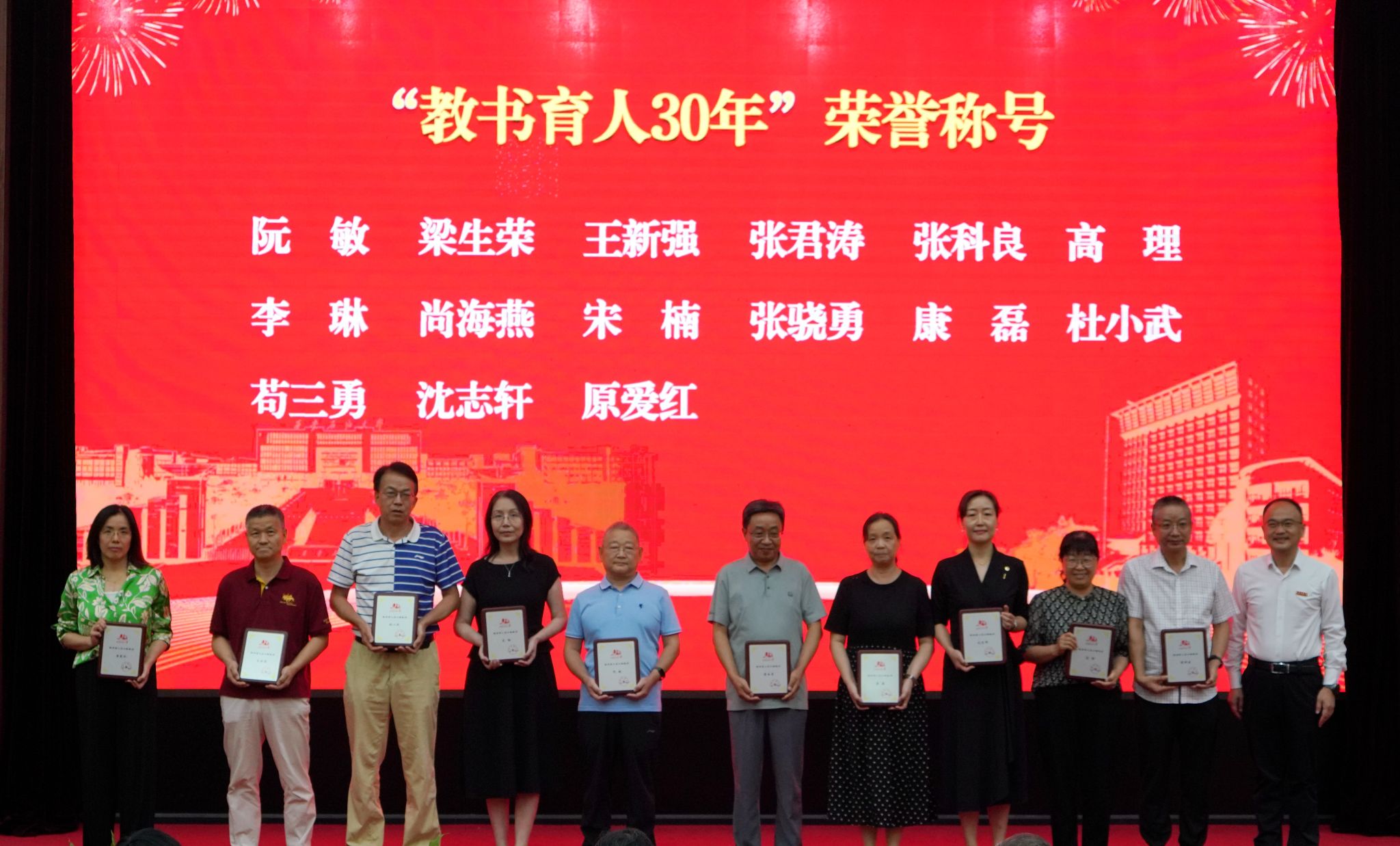 會上,校黨委書記常江宣讀了2024年全國模范教師、國務院政府特殊津貼專家和第三屆全國高校思政課教學展示競賽獲獎名單,校長王進富宣讀了2023年度陜西省科學技術進步獎和陜西省第十六次哲學社會科學優(yōu)秀成果獎獲獎項目名單,校黨委副書記張木宣讀了陜西省人才項目入選名單,校黨委副書記、紀委書記、監(jiān)察專員王輝強宣讀了《陜西省教育廳關于公布第三批省級一流本科課程認定結果的通知》,副校長楊戰(zhàn)社宣讀了2023年陜西學校思政課程課程思政教師“大練兵”主題活動表現(xiàn)突出教師名單,副校長蘇文甫宣讀了2024年陜西省教科文衛(wèi)體系統(tǒng)先進女職工集體和個人名單,副校長張榮軍宣讀了陜西省團學系統(tǒng)表彰名單,副校長張君濤宣讀了《中共西安石油大學委員會關于表彰2024年師德先進集體和先進個人的決定》,副校長趙健宣讀了《中共西安石油大學委員會 西安石油大學關于表彰2024年優(yōu)秀教師、先進教育工作者的決定》《西安石油大學關于表彰獎勵“教書育人30年”教師的決定》,總會計師樊曉民宣讀了《關于表彰抗震救災先進集體和先進個人的決定》,全體與會校領導為受表彰教師代表頒獎。