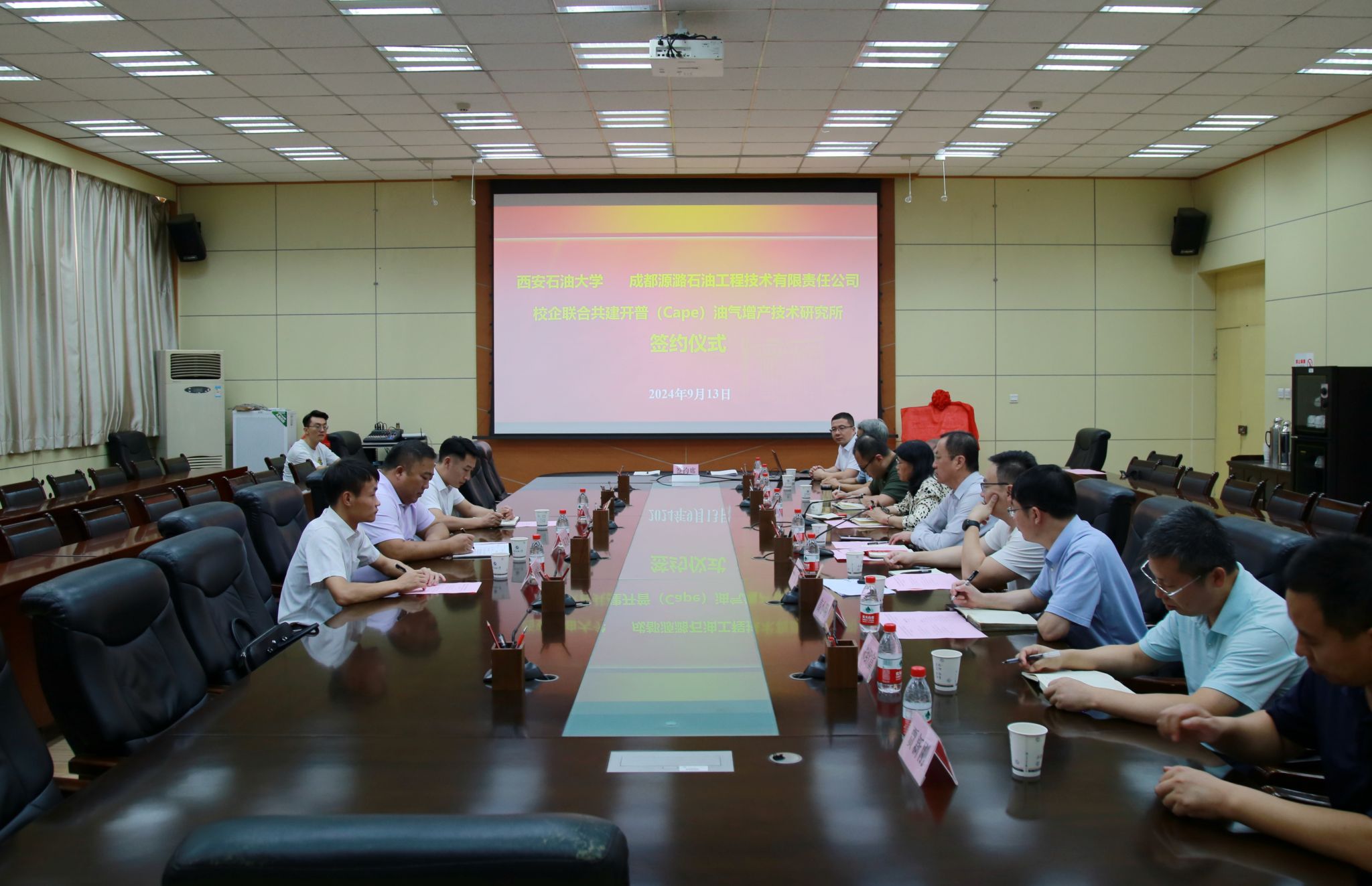 9月13日上午,西安石油大學與成都源潞石油工程技術有限責任公司校企聯(lián)合共建開普(Cape)油氣增產技術研究所簽約儀式在學校雁塔校區(qū)會議中心第一會議室舉行,副校長張榮軍出席簽約儀式,成都源潞石油工程技術有限責任公司總經(jīng)理陳造峰及有關部門負責人,科研處副處長屈樂,化學化工學院領導班子成員、各系主任、分析檢測中心主任參加儀式。