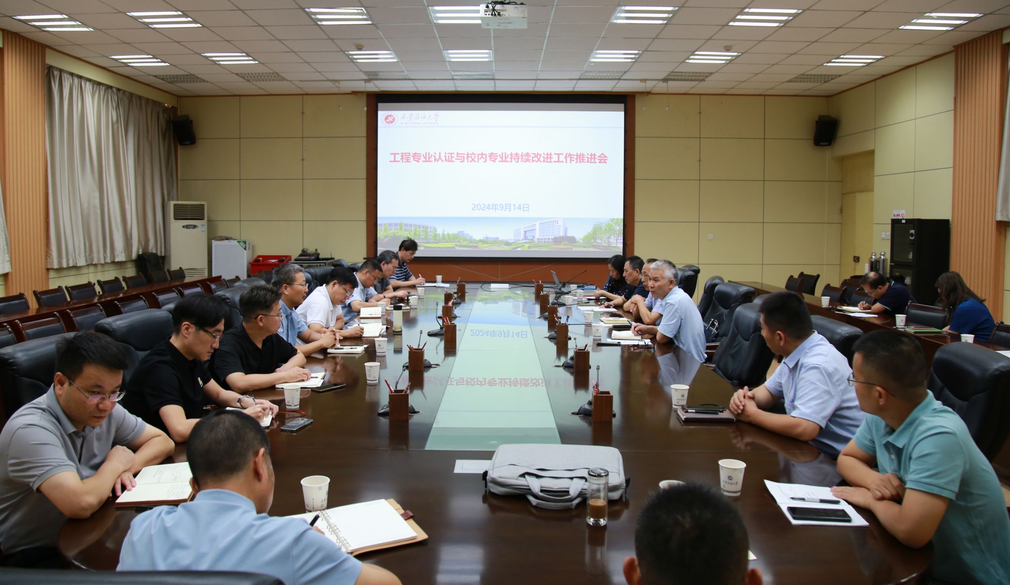 9月14日上午,學(xué)校在雁塔校區(qū)會議中心第一會議室召開工程教育專業(yè)認(rèn)證與校內(nèi)專業(yè)持續(xù)改進(jìn)工作會。副校長張君濤出席會議,教務(wù)處、實驗室管理處負(fù)責(zé)人,石油工程學(xué)院、地球科學(xué)與工程學(xué)院、電子工程學(xué)院、機(jī)械工程學(xué)院、材料科學(xué)與工程學(xué)院、計算機(jī)學(xué)院、化學(xué)化工學(xué)院、新能源學(xué)院、土木工程學(xué)院、理學(xué)院、經(jīng)濟(jì)管理學(xué)院、人文學(xué)院、外國語學(xué)院、體育學(xué)院、音樂系等院(系)教學(xué)副院長(主任)參加會議。