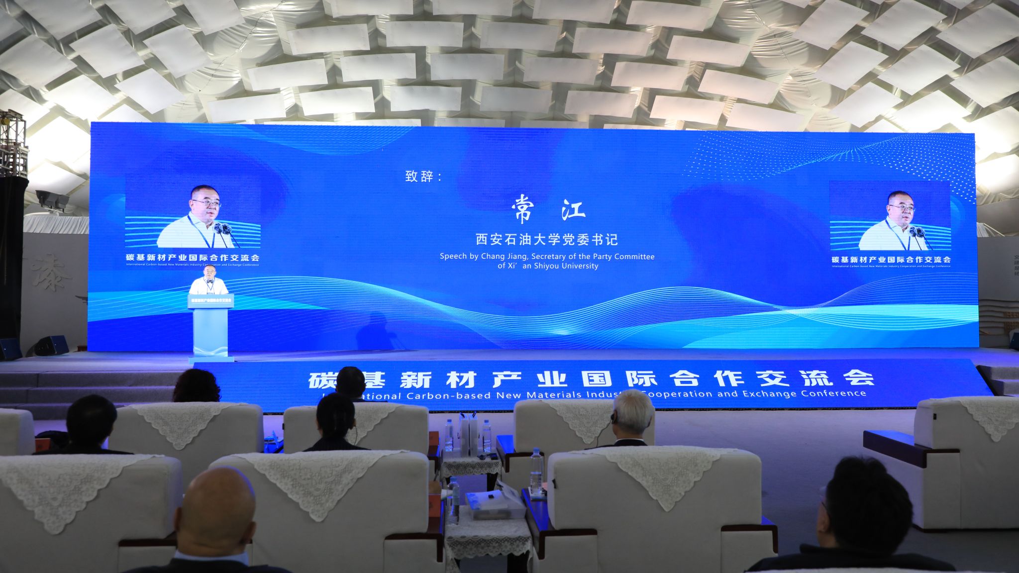 9月22日上午,由中國(guó)民主促進(jìn)會(huì)陜西省委員會(huì)主辦,中國(guó)亞洲經(jīng)濟(jì)發(fā)展協(xié)會(huì)對(duì)外交流委員會(huì)、江蘇江林易海新材料科技發(fā)展有限公司承辦的“碳基新材產(chǎn)業(yè)國(guó)際合作交流會(huì)”在江蘇省揚(yáng)州市舉行。中國(guó)綠色碳匯基金會(huì)理事長(zhǎng)、國(guó)家林草局原總經(jīng)濟(jì)師楊超,民進(jìn)中央副主席、民進(jìn)陜西省委會(huì)主委,陜西省政協(xié)副主席劉寬忍,多國(guó)駐華使節(jié)代表、專家代表、商會(huì)代表、合作嘉賓出席了此次交流會(huì)。我校黨委書記常江應(yīng)邀出席并作大會(huì)致辭,副校長(zhǎng)趙健參加會(huì)議。