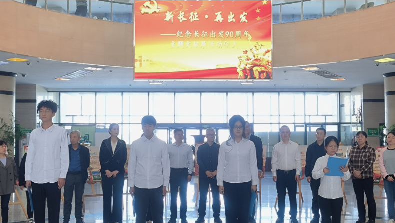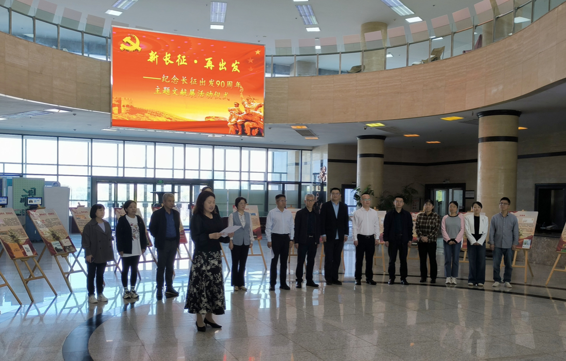 為紀(jì)念紅軍長(zhǎng)征出發(fā)90周年,引導(dǎo)師生讀者弘揚(yáng)和繼承長(zhǎng)征精神,緬懷革命先輩的豐功偉績(jī),10月9日上午,圖書(shū)館、馬克思主義學(xué)院、人文學(xué)院在鄠邑校區(qū)圖書(shū)館聯(lián)合舉辦“新長(zhǎng)征·再出發(fā)”紀(jì)念長(zhǎng)征出發(fā)90周年主題文獻(xiàn)展。副校長(zhǎng)張驍勇出席開(kāi)幕式。相關(guān)部門(mén)、學(xué)院負(fù)責(zé)人,圖書(shū)館工作人員,馬克思主義學(xué)院、人文學(xué)院學(xué)生代表共計(jì)80余人參加活動(dòng)。