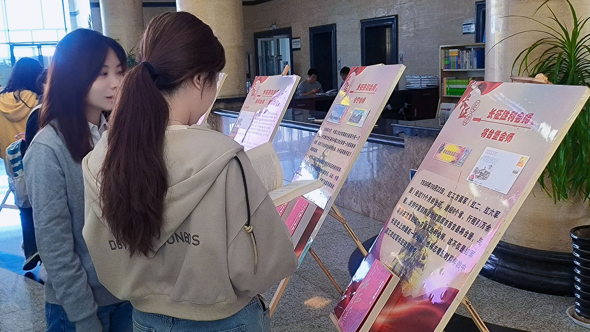 隨后,讀者協(xié)會(huì)的4名同學(xué)朗誦了4首紀(jì)念長(zhǎng)征的詩(shī)詞作品。
