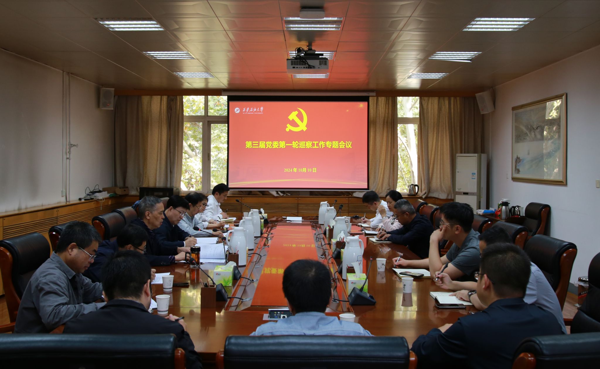 2024年10月10日上午,學校在雁塔校區(qū)行政樓五樓會議室召開第三屆黨委第一輪巡察工作專題會議,校黨委副書記、紀委書記、監(jiān)察專員、校黨委巡察工作領導小組副組長王輝強出席會議并講話。校黨委委員、組織部部長種宇宏和第一巡察組、第二巡察組全體成員參加會議。